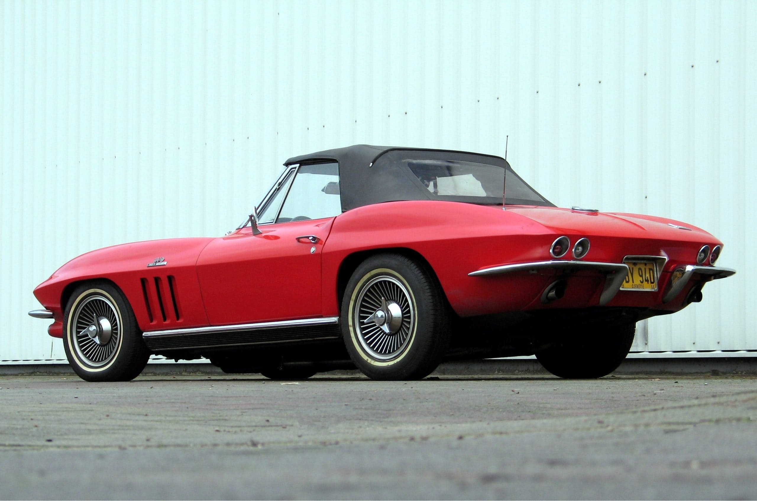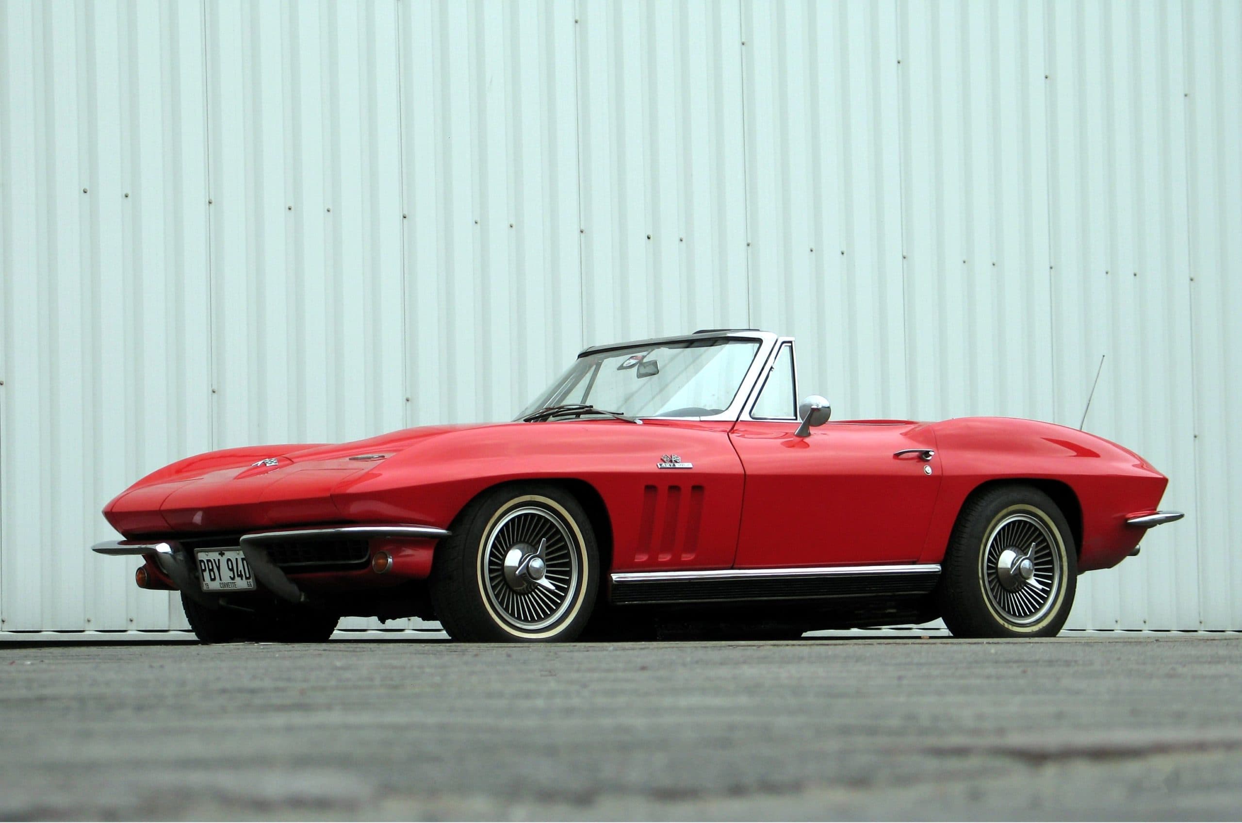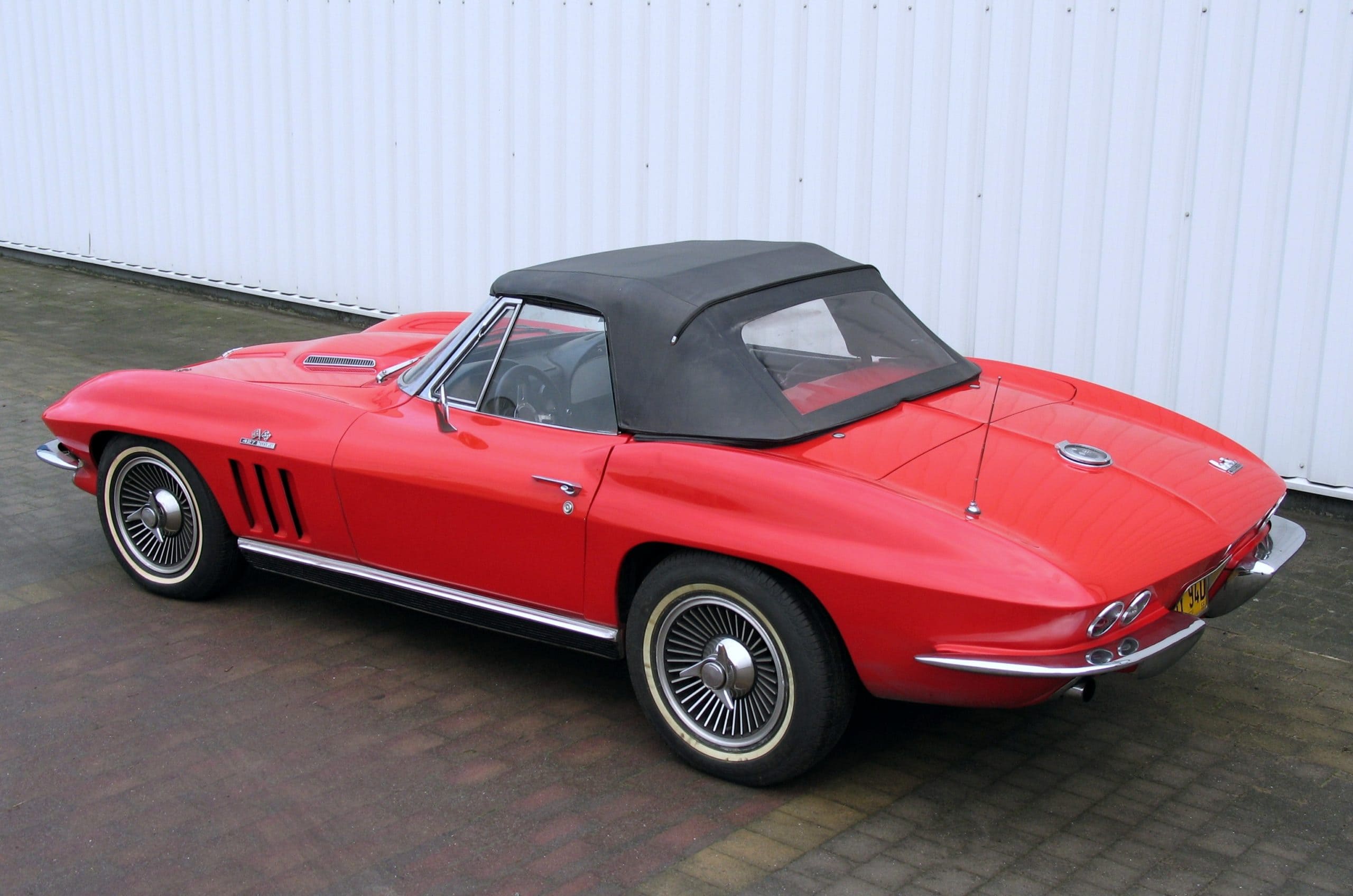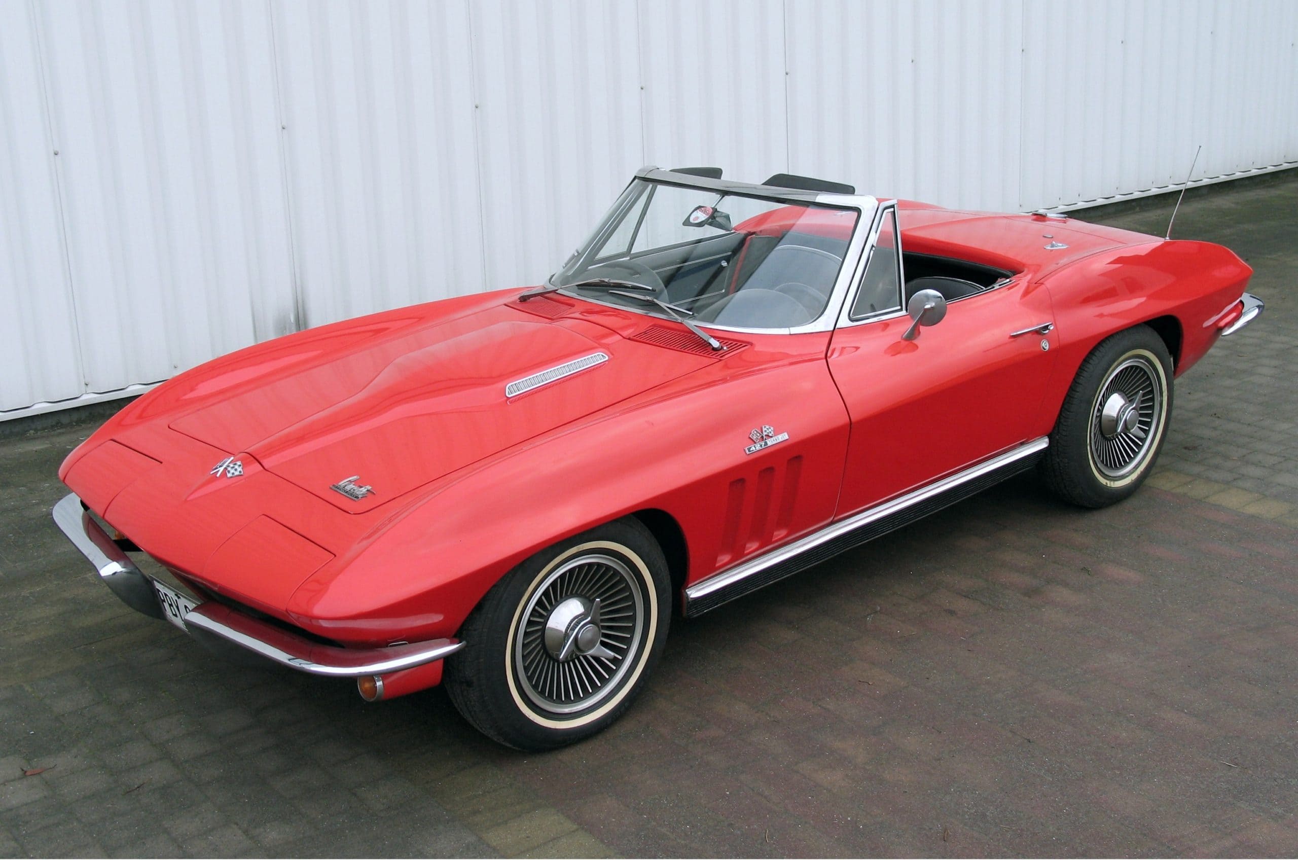 La seconde percée technologique (1965) de cette série Sting-Ray est par contre bien visible de l’extérieur : les observateurs attentifs pouvant voir à l’excroissance du capot que l’on a affaire à une version dotée d’un big block, la cylindrée V8 Big-Bloc est d’abord de 6,5 litres, mais elle atteint 7 litres dès 1966 avec un couple énorme : 554 Nm à 4000 t/min et 425cv permettant le 0 à 100 km/h en seulement 4,8 secondes… 1967 est le millésime du montage d’un double circuit de freinage et de 4 freins à disque avec étriers à cinq pistons à l’avant et à l’arrière.