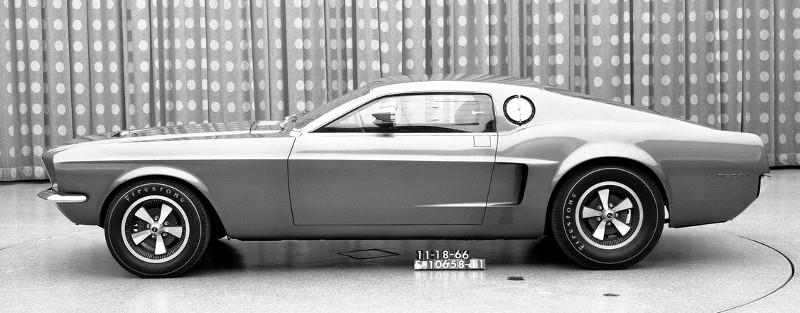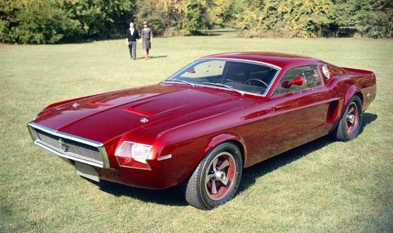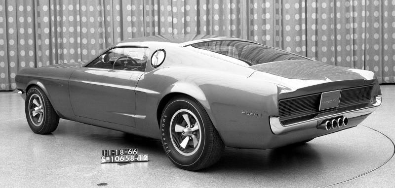 Fin 1966, le bureau de design de Ford USA s’est donc mis à préparer un concept Mustang Fastback, 2 places, pour prévisualiser une partie des projets concernant le futur modèle 1969 qui serait motorisé par un V8 351ci Windsor… ou un V8 428ci Cobra-Jet…, la rencontre parfaite du consumérisme totalitaire et de la tradition chamano-hallucinatoire avec une pointe de la technologie nationale…, le but de ces Concept-cars est d’allumer le public-cible, c’est ainsi s’assurer une destruction cérébrale intensive, grâce à un matraquage merdiatique constamment élevé.