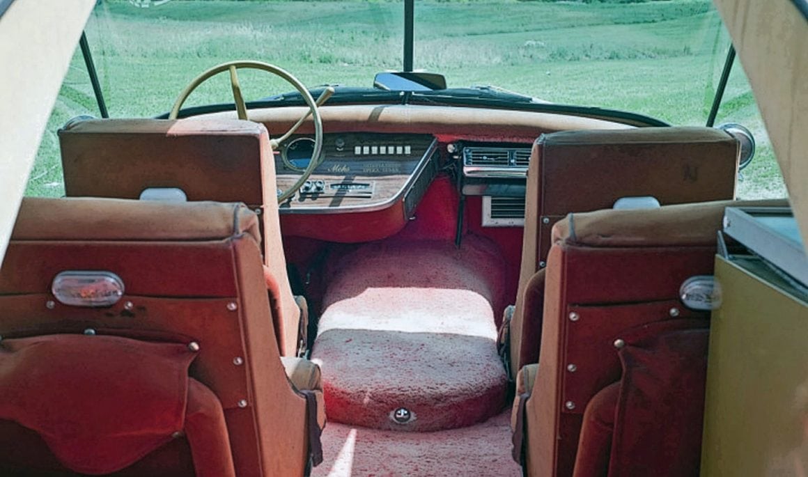 – Vous savez qu’une des quatre MOHS, la Sedan Opera personnelle de Bruce MOHS, a été restaurée dans son état d’origine par deux Hautes Ecoles du Wisconsin. Un ami personnel de Bruce MOHS, Fred Beyer a coordonné la restauration avec Jay Abitz et son associé Bob Abitz. L’Opera Sedan a été présentée en août 2009 dans le magazine Hot Rod. Mais celle que vous avez est 100% d’origine… Il y avait aussi la SafariKar construite en 1972, encore plus exotique que la MOHS Ostentatienne. La SafariKars était en aluminium, l’extérieur avait été recouvert de Naugahyde tendu sur un rembourrage en mousse. Le véhicule avait un hard top rétractable, une télévision , quatre roues motrices , une radio bidirectionnelle et un four alimenté au butane. Seulement trois ont été produites, probablement toutes en 1972…