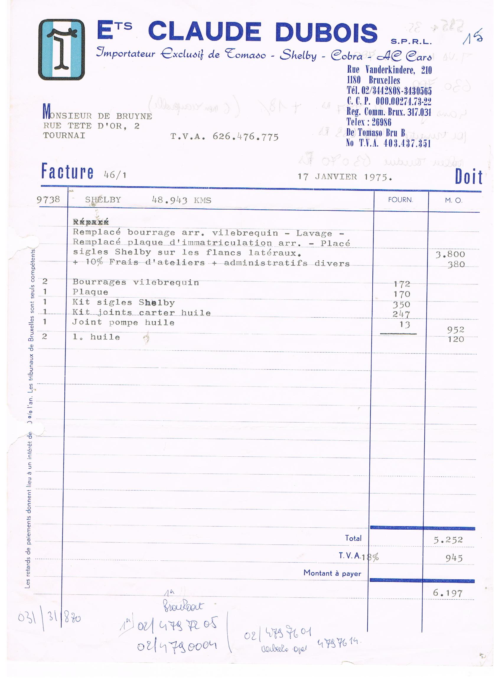Si l’homologation en classe B du championnat SCCA requérait la construction de cent exemplaires, ce sont en réalité 562 voitures qui sortiront en 1965 des ateliers Shelby…, ils seront vendus 4.500 $ contre environ 3.000 $ pour un coupé Mustang Fastback de série dépourvu d’options High Performance.