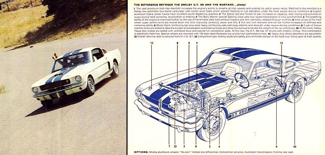 Nettement moins cher, un coupé Mustang Fastback de série, motorisé par le V8 390 ci de 335 chevaux, offre des performances pratiquement identiques à celles de la 350 GT… et une tenue de route quasiment équivalente grâce à la suspension Heavy-Duty commune aux deux gammes.