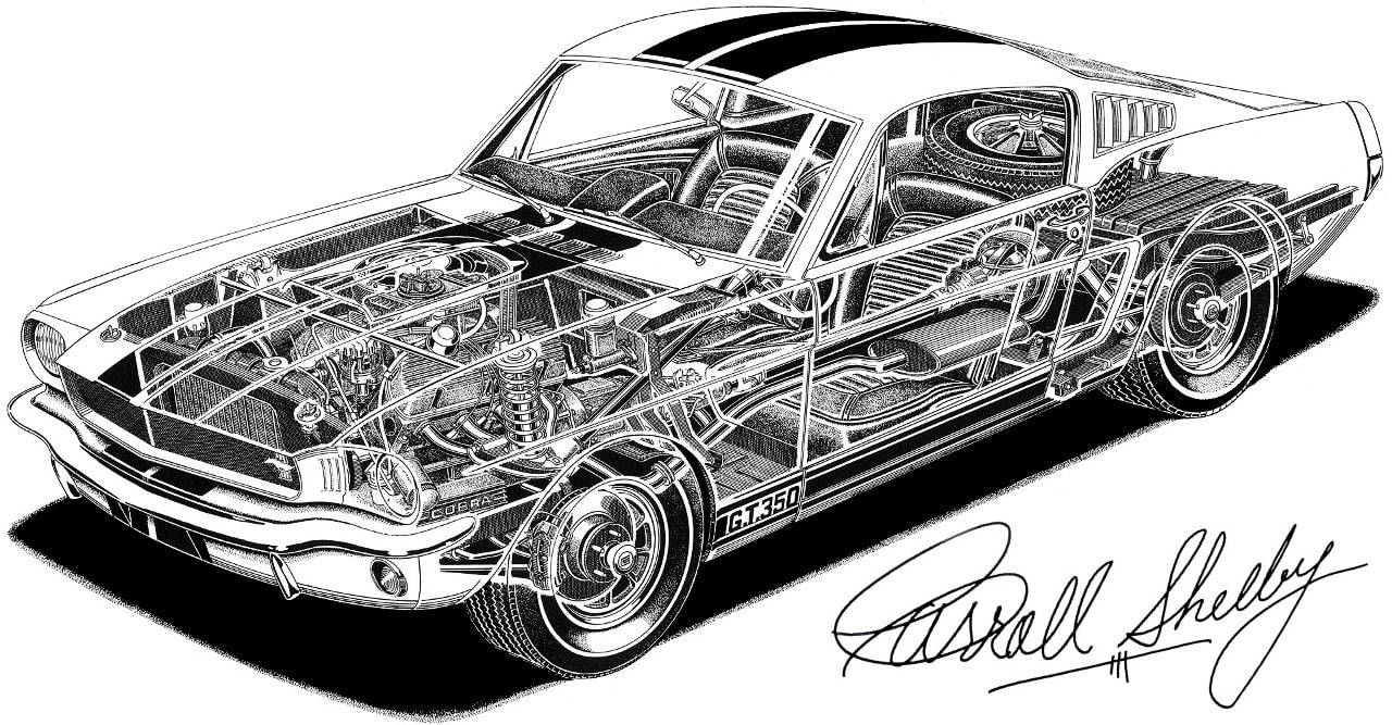 Elle fut construite à partir du coupé Mustang Fastback de série, contrairement à la Cobra envisagée au départ comme production confidentielle orientée vers la compétition, la transformation des Mustang par Carroll Shelby dépassera largement les prévisions.