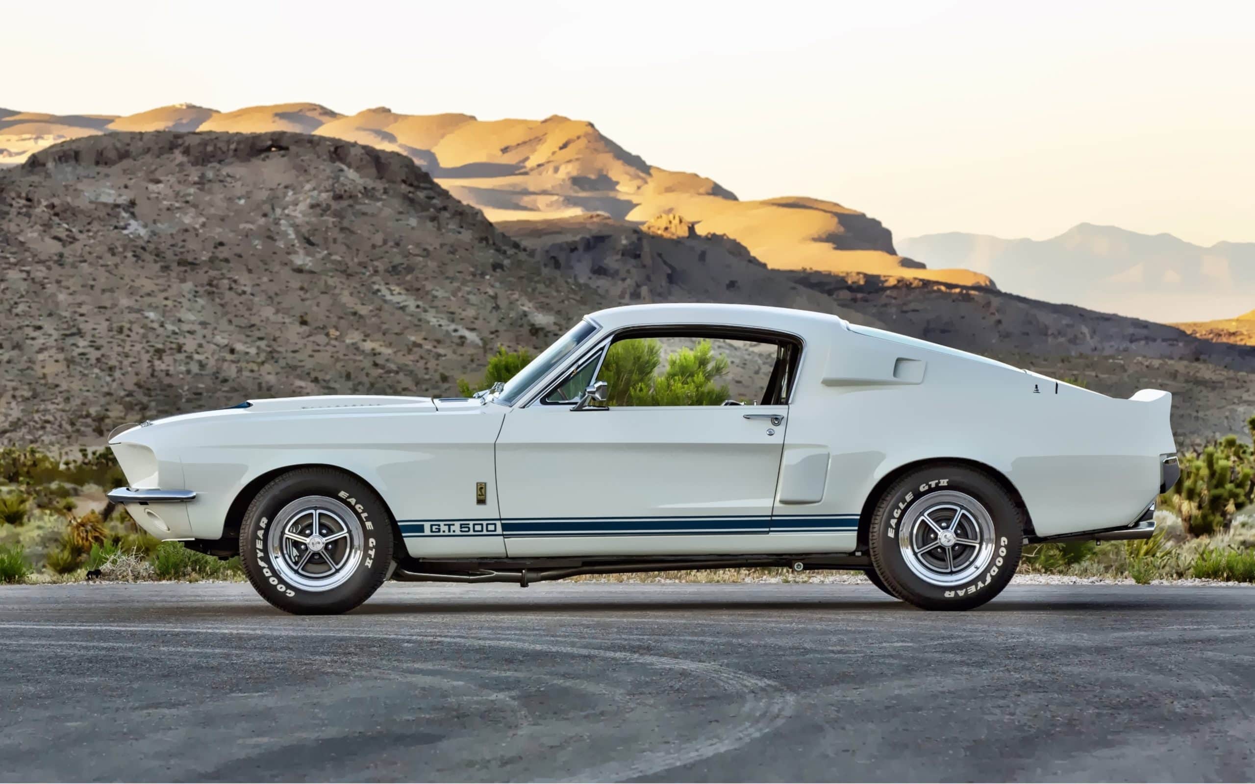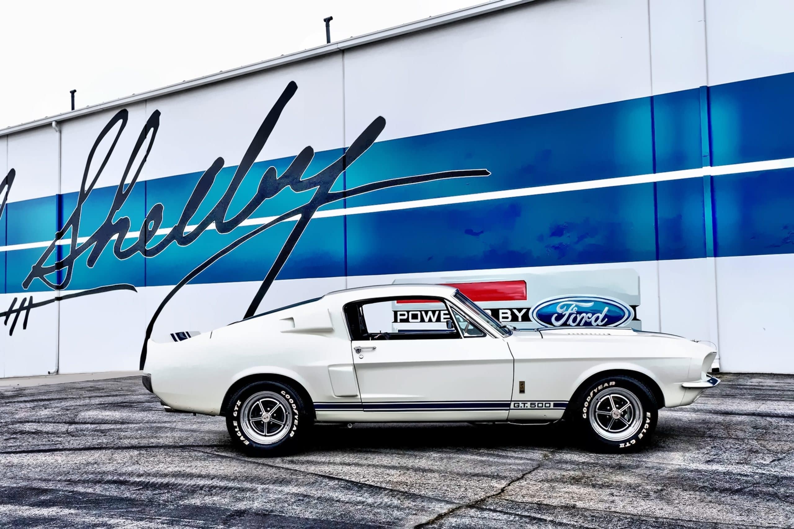 En 1967, la proue est allongée et le capot surmonté d’une volumineuse entrée d’air, tandis que la poupe se prolonge par un becquet, l’évolution de la gamme Ford Mustang ne favorise pas les Shelby, qui se trouvent concurrencées par leurs cousines, notamment les Mach 1, Boss 302 et 429.