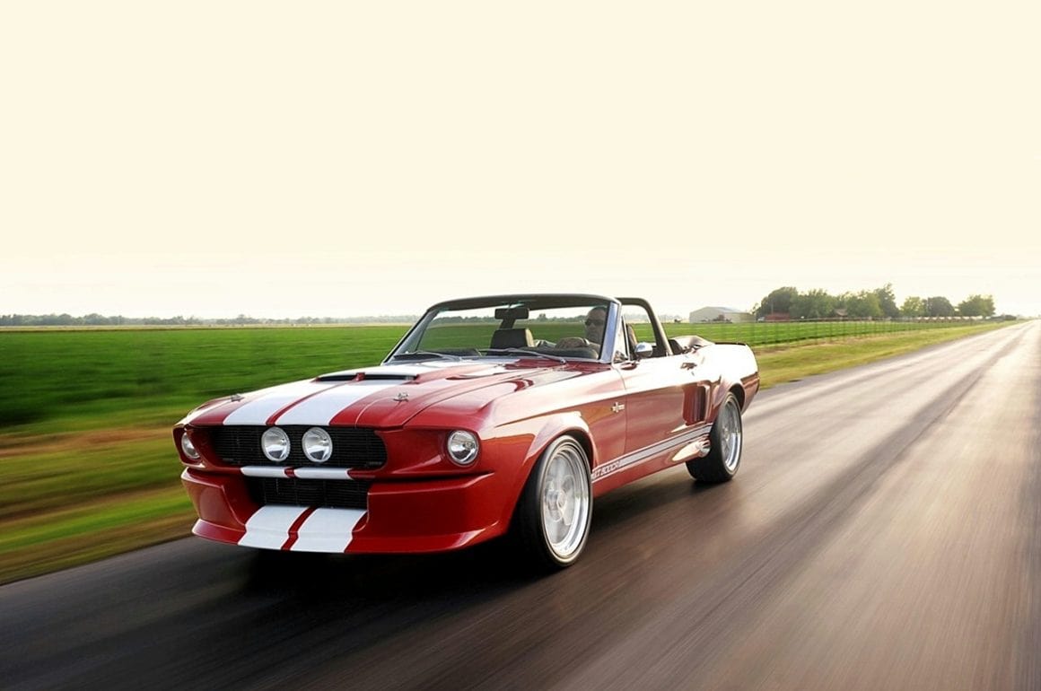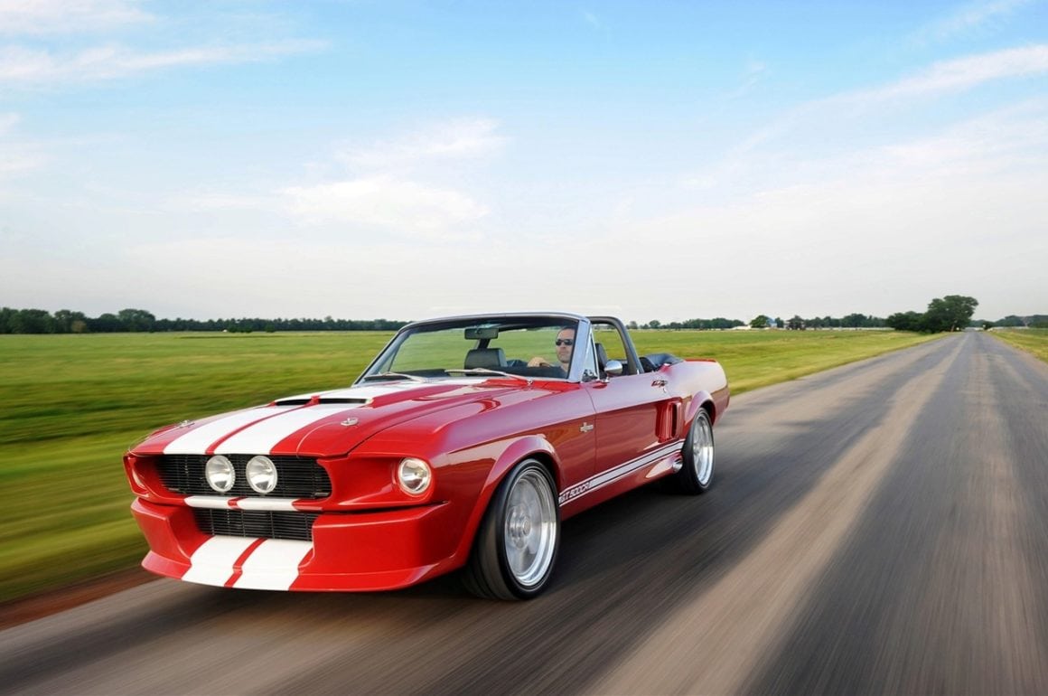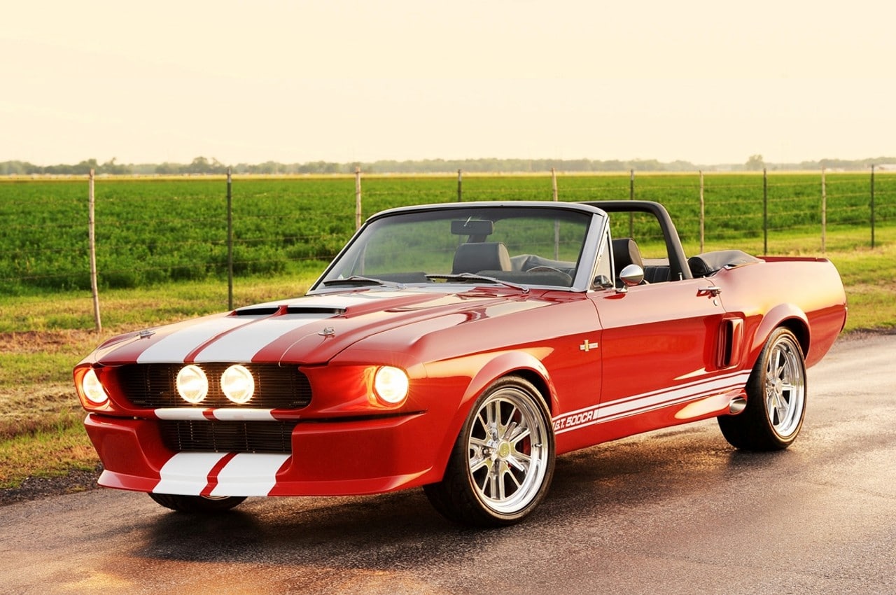 Cette Mustang réplica Shelby GT500 Cabrio, met également à l’honneur une tendance peu connue en France : le Restomod.