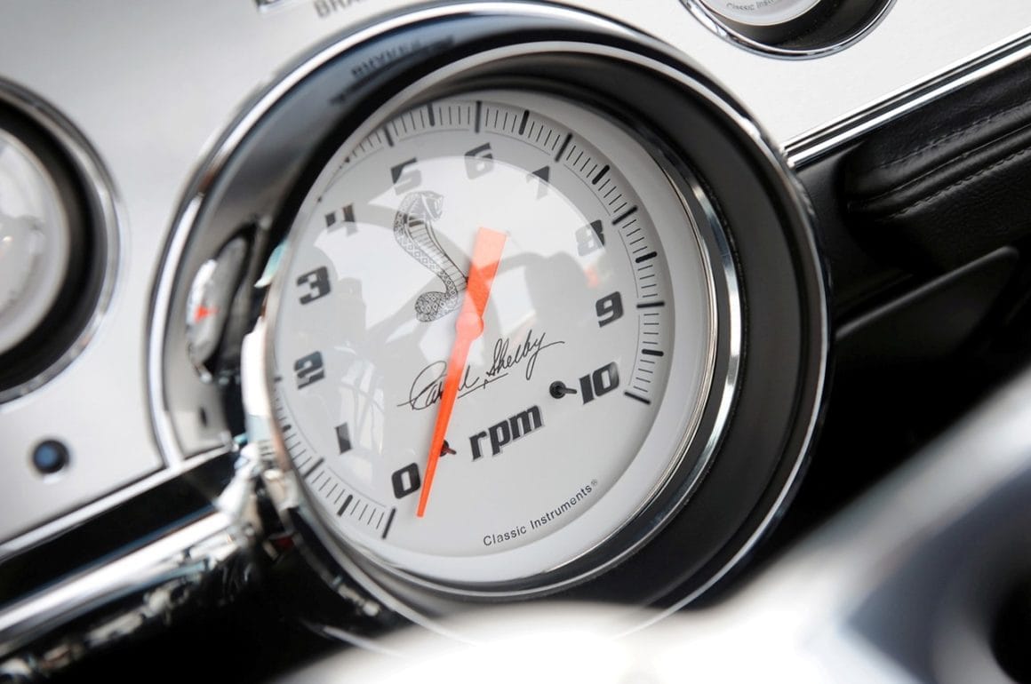 Les sièges comportent une imitation de la signature de Carroll Shelby, les ceintures de sécurité Camlock sont à 5 points, les instruments de bord sont également affublés de l’imitation de la signature de Carroll Shelby…
