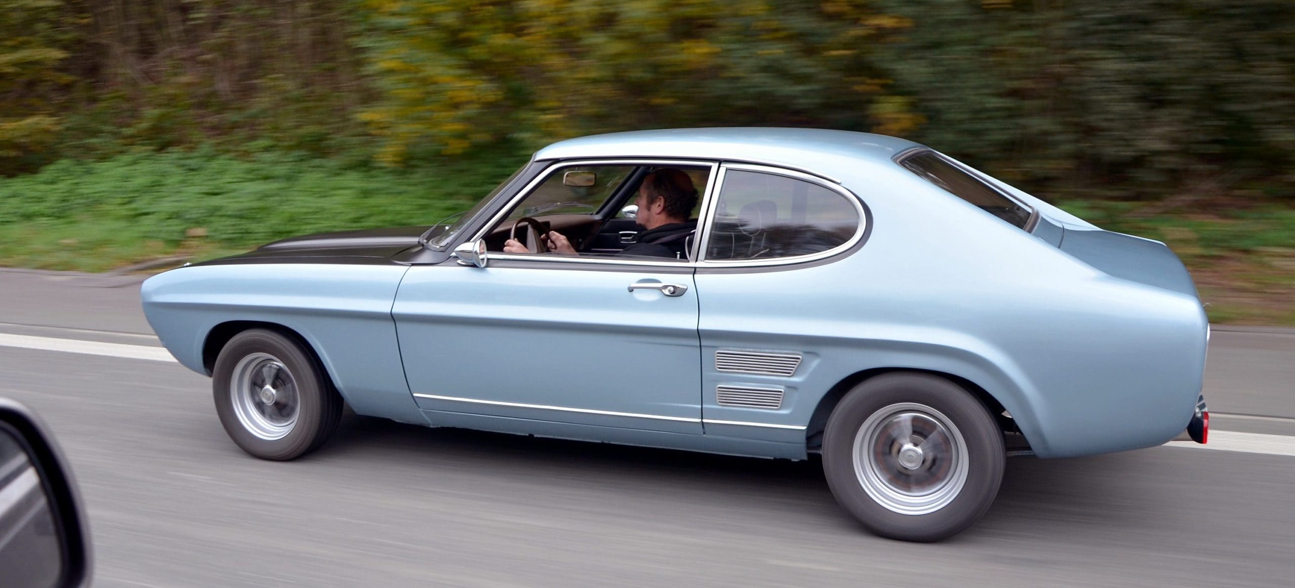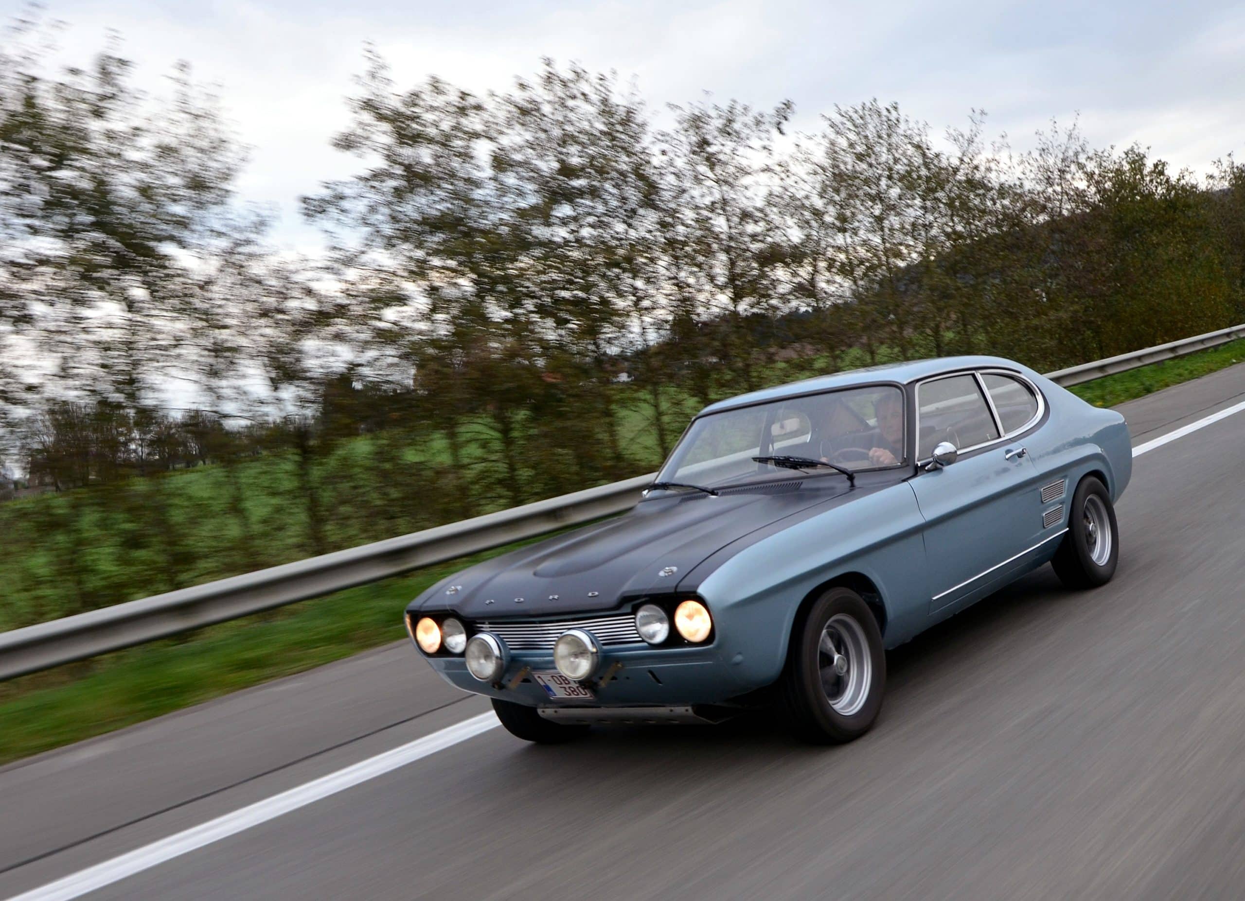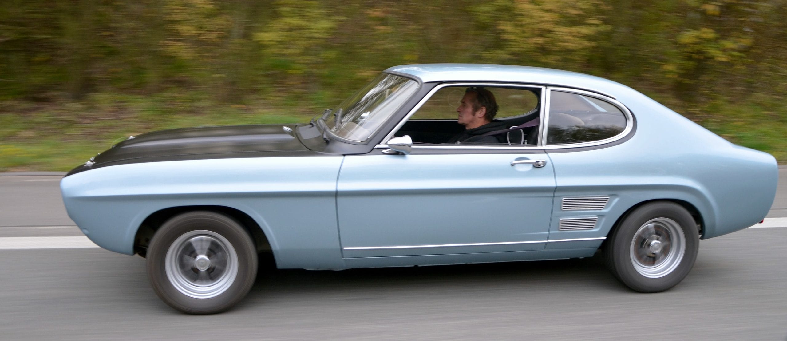 Ford Cologne dévoila la Capri 2300GT a moteur 125 chevaux en automne 1969…, elle reprenait le moteur de la Taunus 20MRS, qui permettait une accélération de 0 à 100 en moins de 10 secondes et une vitesse de pointe de 189 km/h (un rien optimiste de la part de l’usine !)