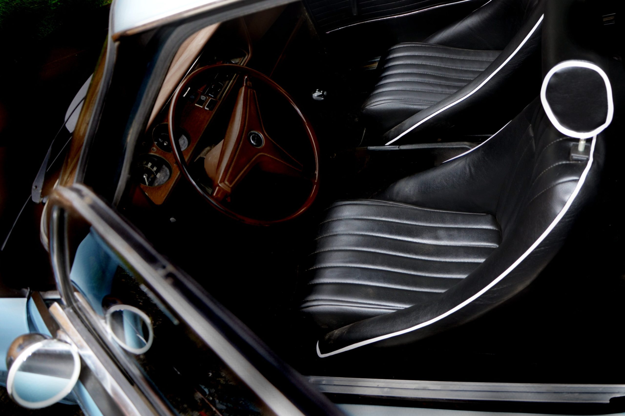 Ces voitures utilisaient les suspensions de compétition terriblement durcies et rabaissées. avec une innovation pour l’époque, le ressort semi-elliptique arrière était un monolame qui économisait du poids…, les amortisseurs étaient des Bilstein.., les jantes de 6′ étaient des Richard Grant en alliage léger chaussées de PireIï CN 36 en 185-HR…, les toutes premières 2600RS (les plus rares) avaient un capot noir mat, pas de pare chocs, des clignotants montés sur la caisse, des passages d’ailes élargis, un volant sport, des sièges-baquet très confortables, un compteur kilométrique gradué jusqu’à 220 km/h, pas de radio ni de console centrale, mais un compte-tours dont la zone rouge commençait juste avant 6000 t/min…, le niveau d’équipement intérieur était nettement amélioré : une paire de sièges Scheel en tissu noir et dossier inclinable, procuraient un, confort acceptable compte tenu de la dureté des suspensions.