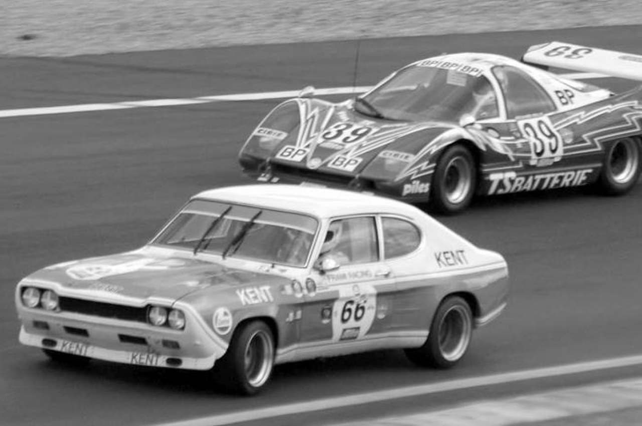 Si la Capri ne s’est jamais montrée convaincante en rallye (échecs cuisants à l’East African Safari où l’Escort lui était nettement supérieure), il n’en n’a pas été de même en circuit… et de loin s’en faut…, il faut d’ailleurs rectifier d’emblée une idée fausse, hélas largement répandue : les Capri de circuit étaient, depuis le début jusqu’à la fin, des voitures Anglo-Allemandes, elles étaient peut-être plus allemandes qu’anglaises parce que le département Compétition était basé à Cologne (de nombreuses Capri d’usine portaient d’ailleurs une plaque de police K -Cologne) et que les voitures étaient réparées et entretenues à Cologne…, mais du début à la fin, les moteurs étaient conçus et construits à l’origine en Angleterre.