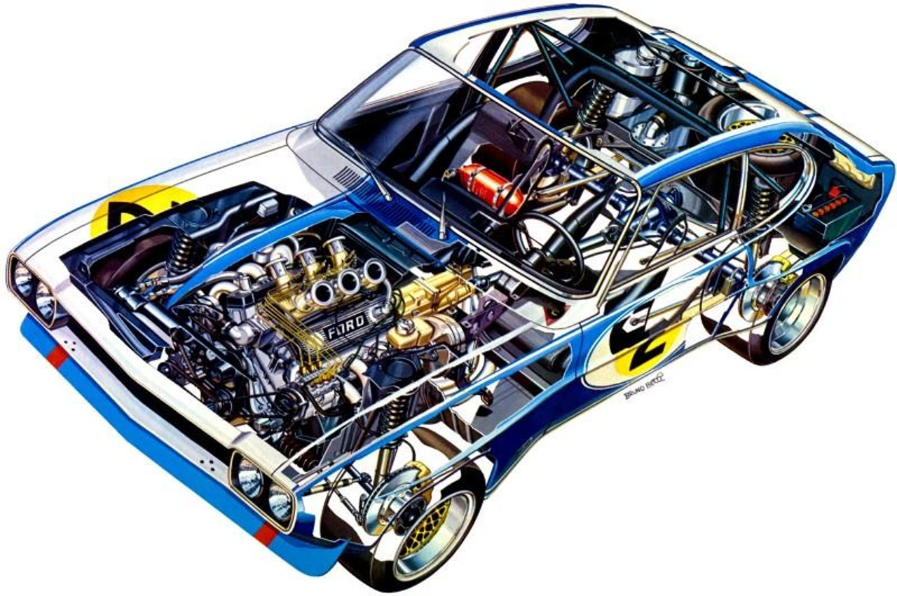 Pour la saison 1970, les moteurs développaient ± 200 chevaux, qui furent portés à 210-220 chevaux à l’aide de l’injection Tecalemit-Jackson, des soupapes plus grandes, un arbre à cames à 3000 et un taux de compression de 11,2…, le plus puissant des moteurs utilisés dans les Capri 4×4 développait 252 chevaux à 6100 t/min…, ce qui était la puissance développée en 1980 par les moteurs Ford en Groupe 1, avec un simple carburateur !