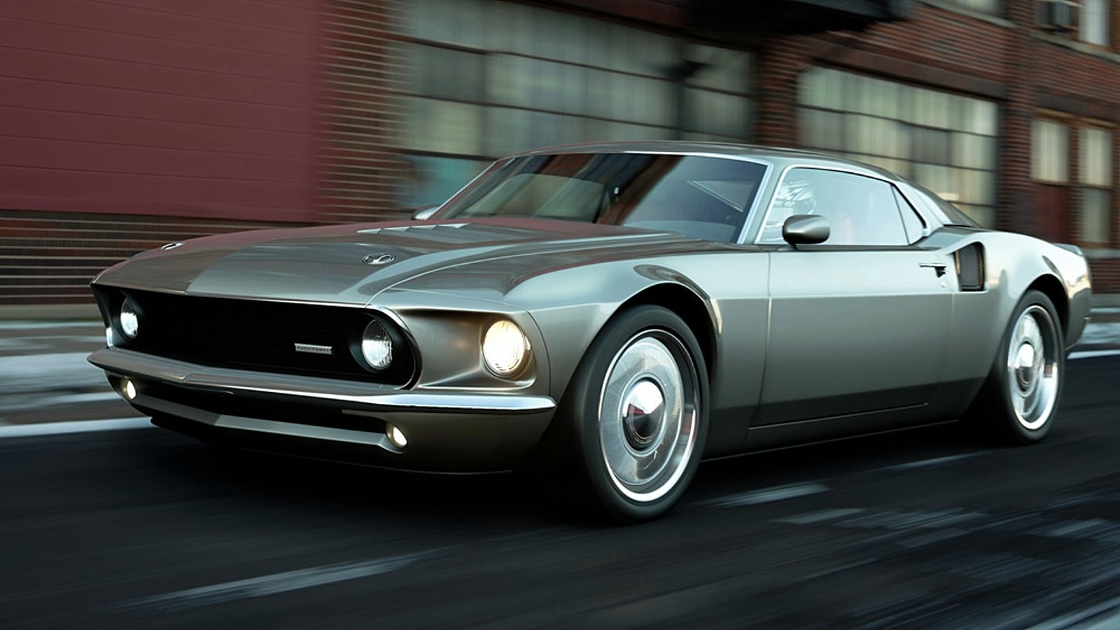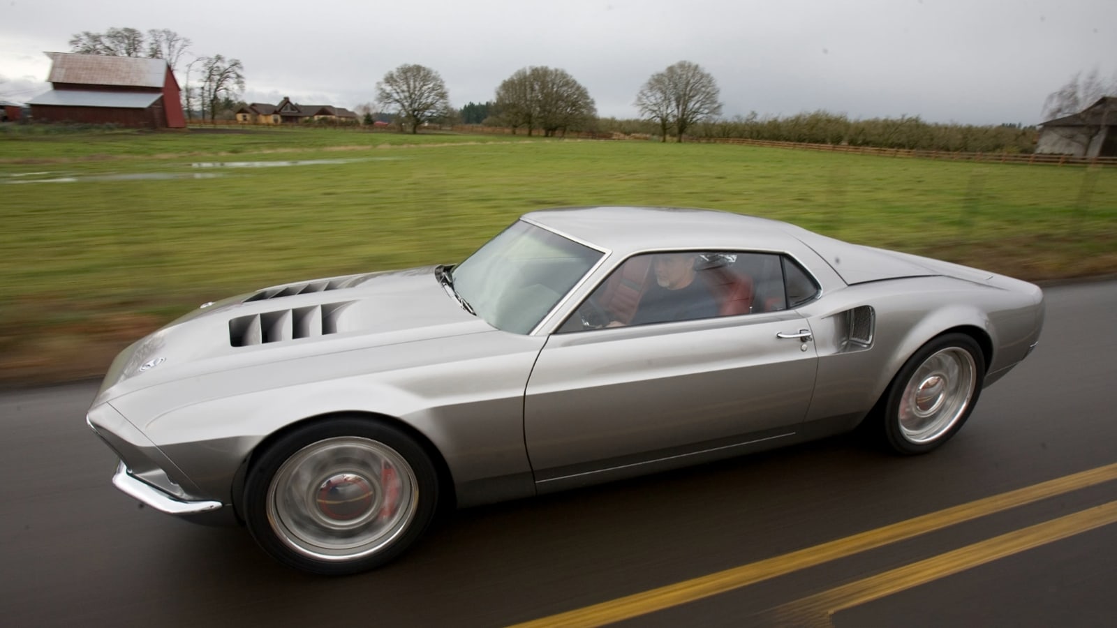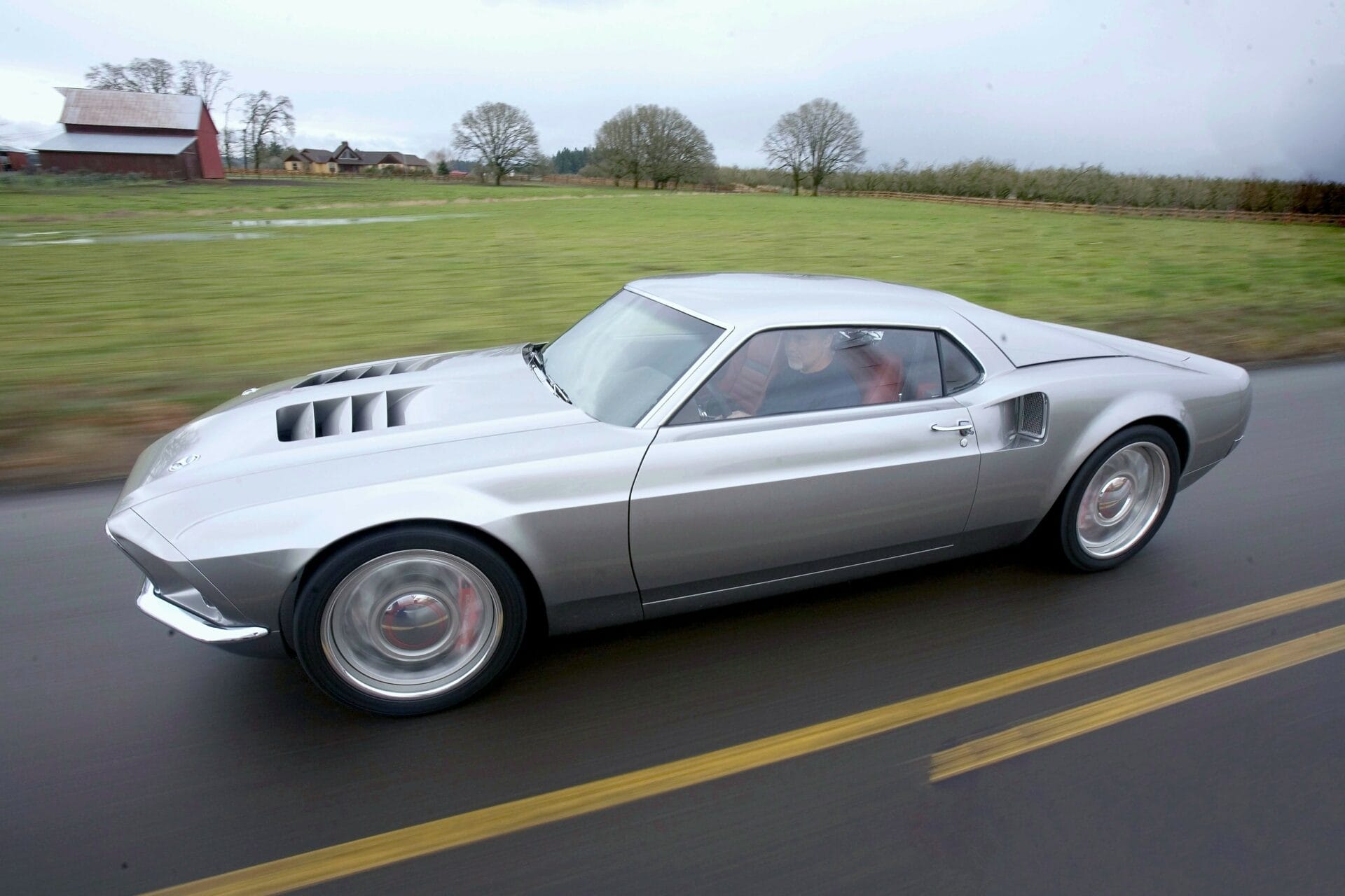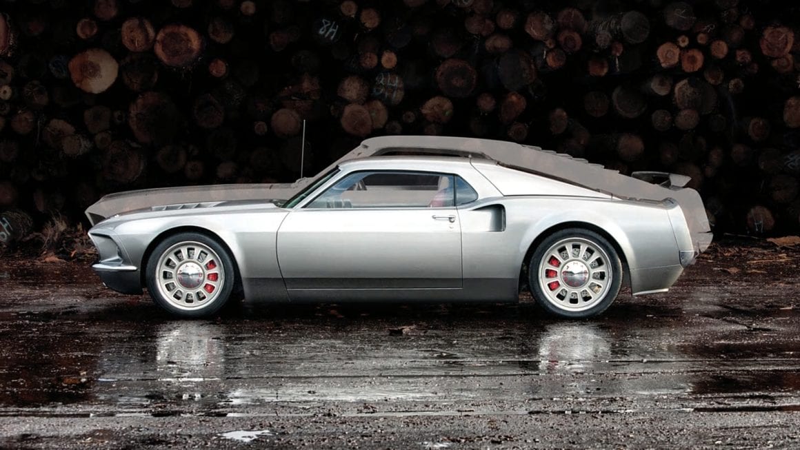 Comme vous vous en doutiez sûrement un peu, la carrosserie a été élargie, tandis que le toit a été surbaissé afin de copier la ligne d’un des prototypes Mustang de 1969.