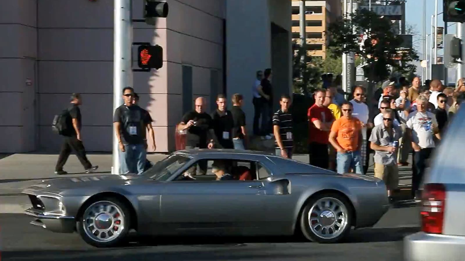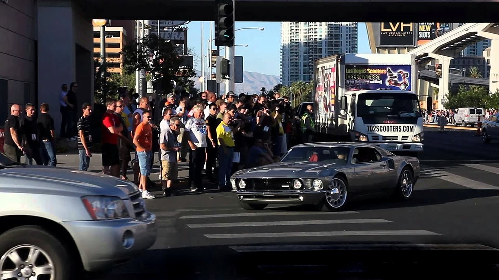 Le nombre de belles voitures qui circulent à Las Vegas est relativement gigantesque, mais, en ce qui a trait aux voitures totalement hors de l’ordinaire, le projet Mach-Forty en était un d’envergure qui risquait de rendre fous les mordus de Mustang’s et fanatiques de Ford GT…. et, effectivement, de voir débouler ce “Mix” au Sema-Show, ce fut du délire…