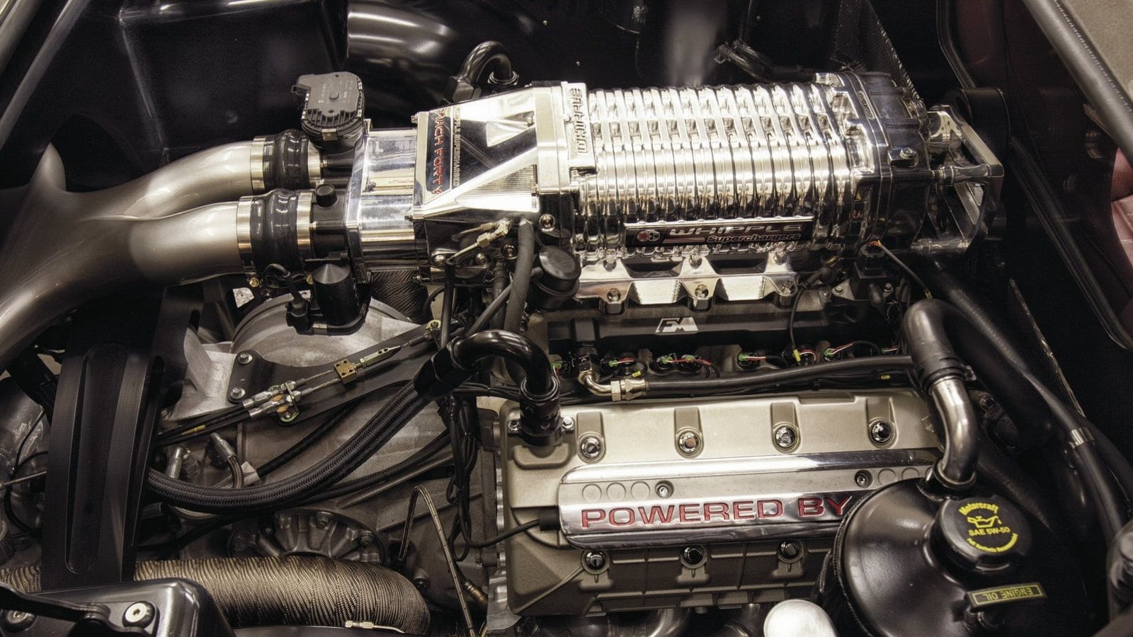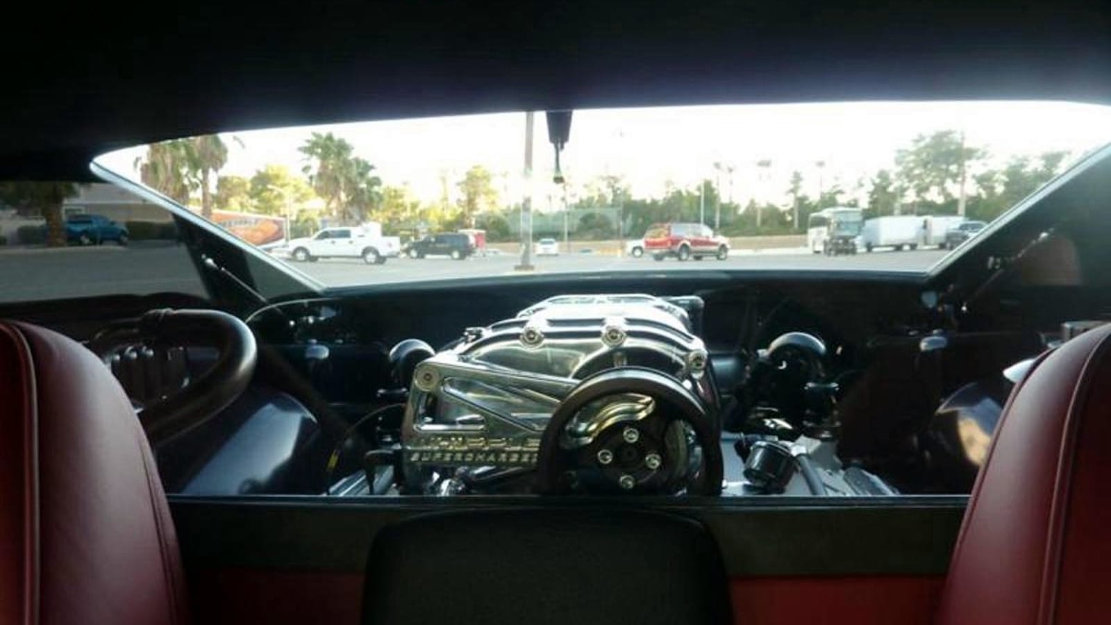 La construction a duré trois ans et a couté un pont d’or…, la base technique étant le moteur V8 5L4 suralimenté de 600cv (miraculeusement intact) récupéré d’une Ford GT récente mais déclarée “bonne pour la casse” après un accident… et la carrosserie d’une Mustang 1969 Mach 1.