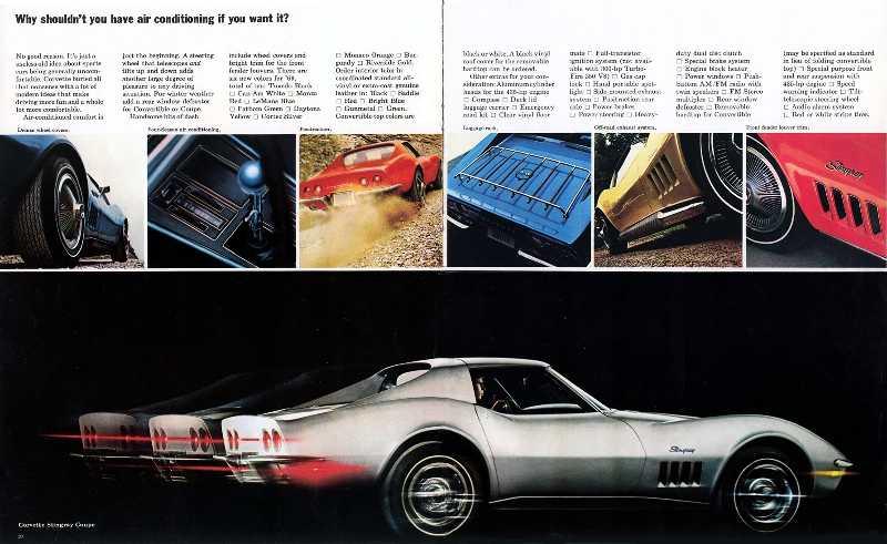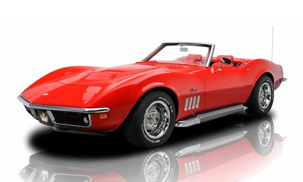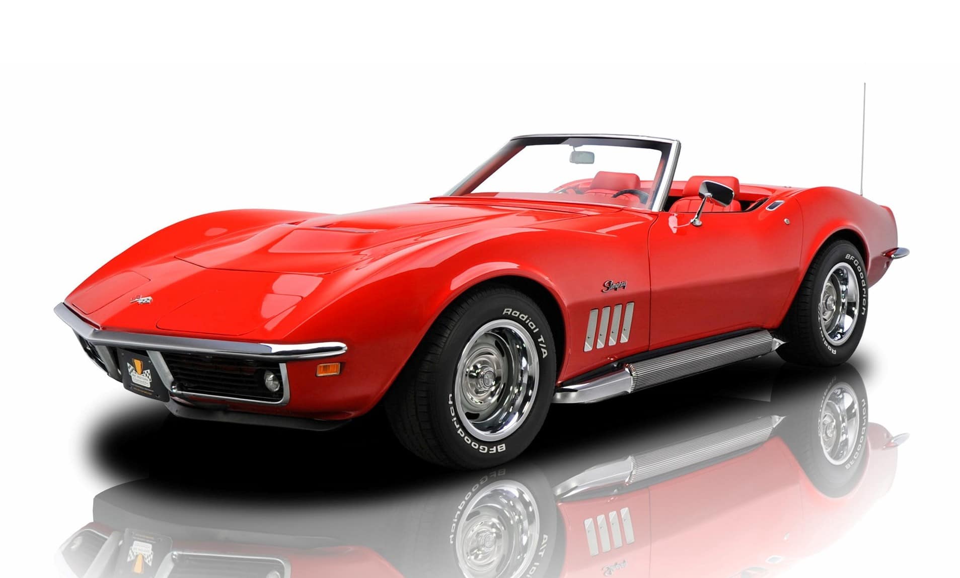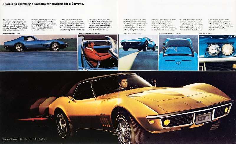 La Corvette est disponible en coupé et cabriolet, ce dernier représentant les deux tiers de la production en 1968.