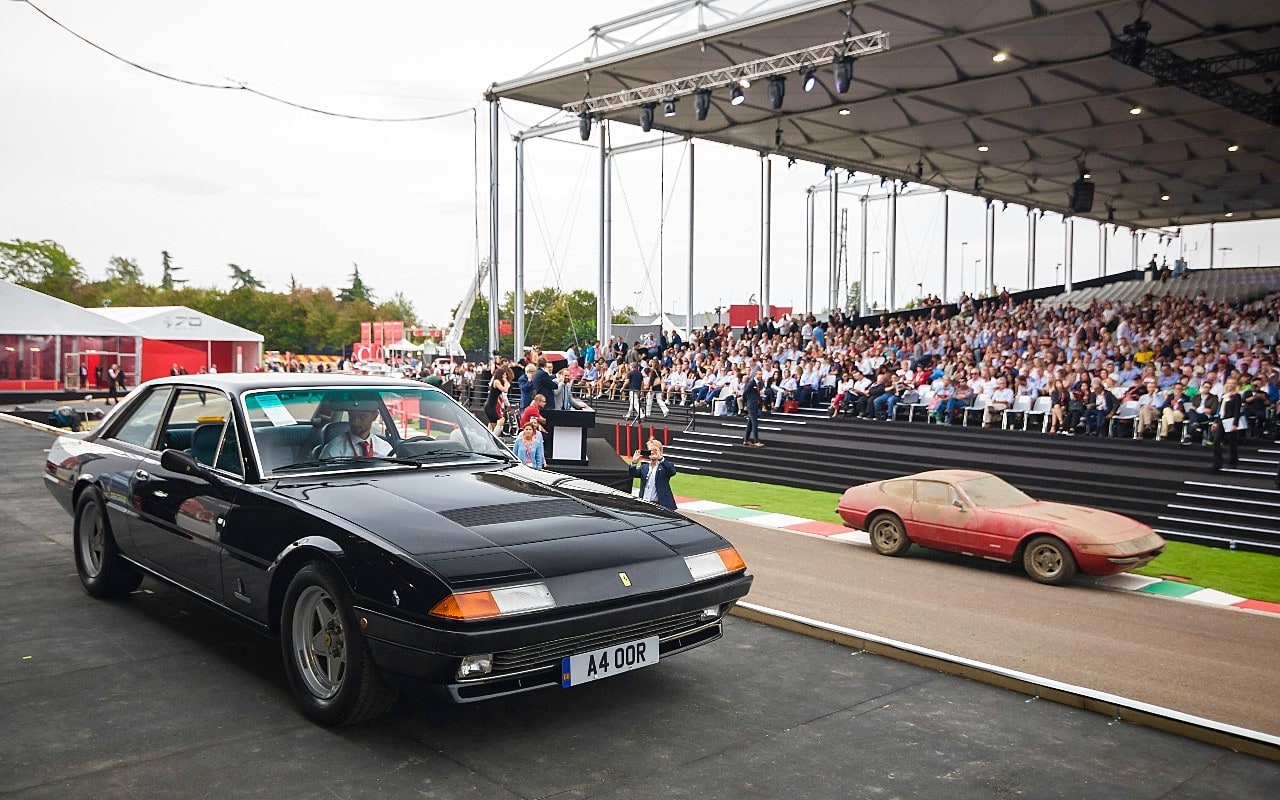 Mais en attendant mieux (gag !), le rôle de la supercar, pour la marque au cheval cabré, sera tenu par ce grand et lourd coupé semi-plastique héritant d’un V12 de 352 mièvres chevaux sous le capot avant…, la dernière évolution du fameux V12 “Colombo”.