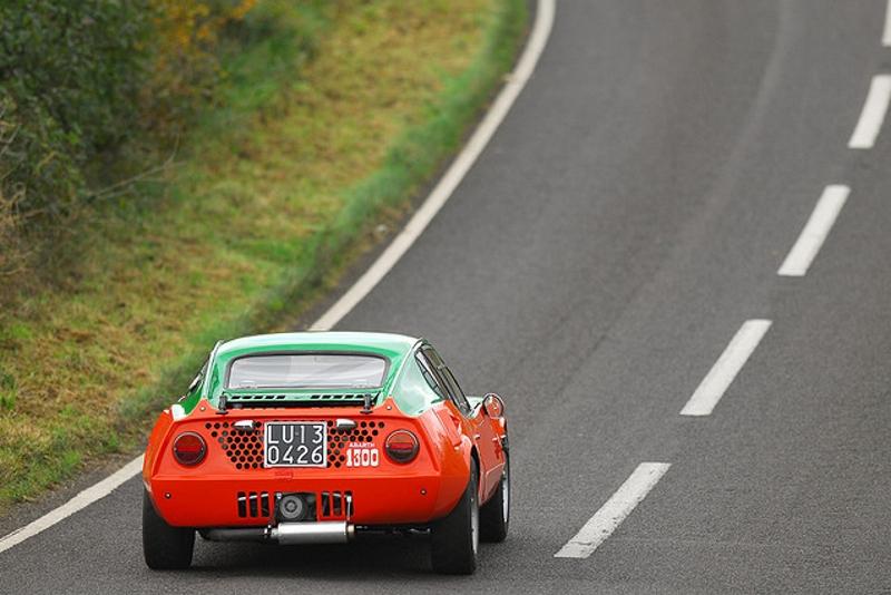 C’est donc avec curiosité que j’ai dernièrement pris le volant (rassurez-vous, je l’ai rendu après l’essai en même temps que la voiture) d’un petit coupé 1300 Scorpione, constitué par un soubassement de Fiat 850 Sport monté avec un moteur Fiat 124 à arbre à cames latéral, le tout carrossé par F. Lombardi.