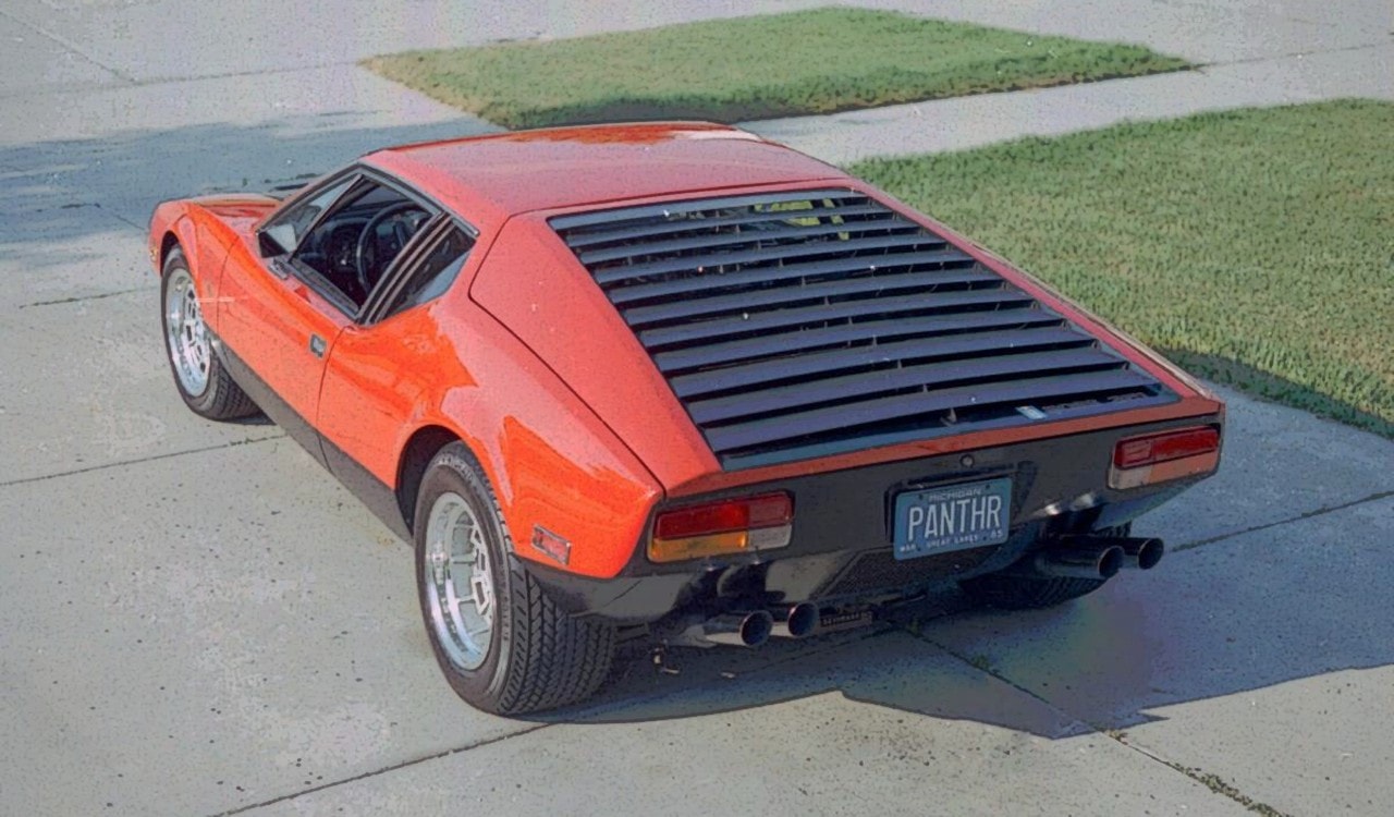 La DeTomaso Pantera, avec son V8 en fonte Yankee-bourrin positionné sans logique avec le design de la carrosserie au look folklorique, est une crétinerie atypique et kitch qui fut immédiatement boudée par les puristes, puis haïe par ceux qui ont eu le malheur d’en avoir acheté une (j’en suis, une douzaine m’ont possédé et j’en reste marqué et traumatisé, remerciant le ciel de ne pas être sorti ruiné de cet épisode de ma vie aventureuse)… Mais elle est adorée des carrossiers véreux et vénérée par les garagistes sans scrupules pour qui sa tendance naturelle à pourrir et à exploser sa mécanique a représenté (et ça dure encore, quoiqu’elles disparaissent peu à peu) un fond de commerce important et régulier qui en a sauvé quelques-uns de la faillite…