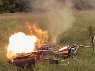C’est Peter Fonda, l’acteur Dan Haggerty et le customisateur Tex Hall qui vont se charger de la construction des deux “Billy Bike” et des deux “Captain America” nécessaires aux besoins du tournage.