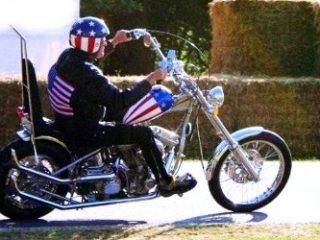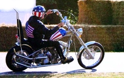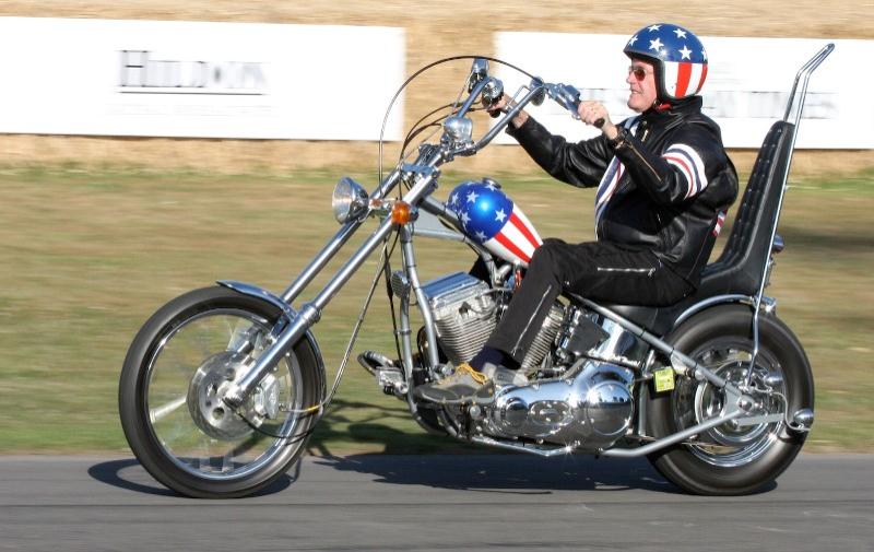 J’ai rencontré Peter Fonda il y a quelques années, il était venu effectuer un “remember” du film “EasyRider” à l’occasion d’une manifestation auto-moto dans le sud de l’Angleterre… et il y faisait une petite démonstration au guidon d’une réplique du chopper “Captain América”…