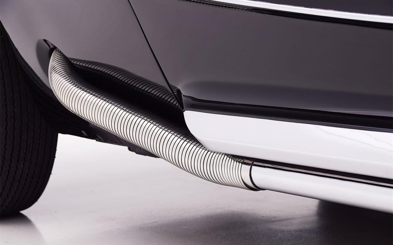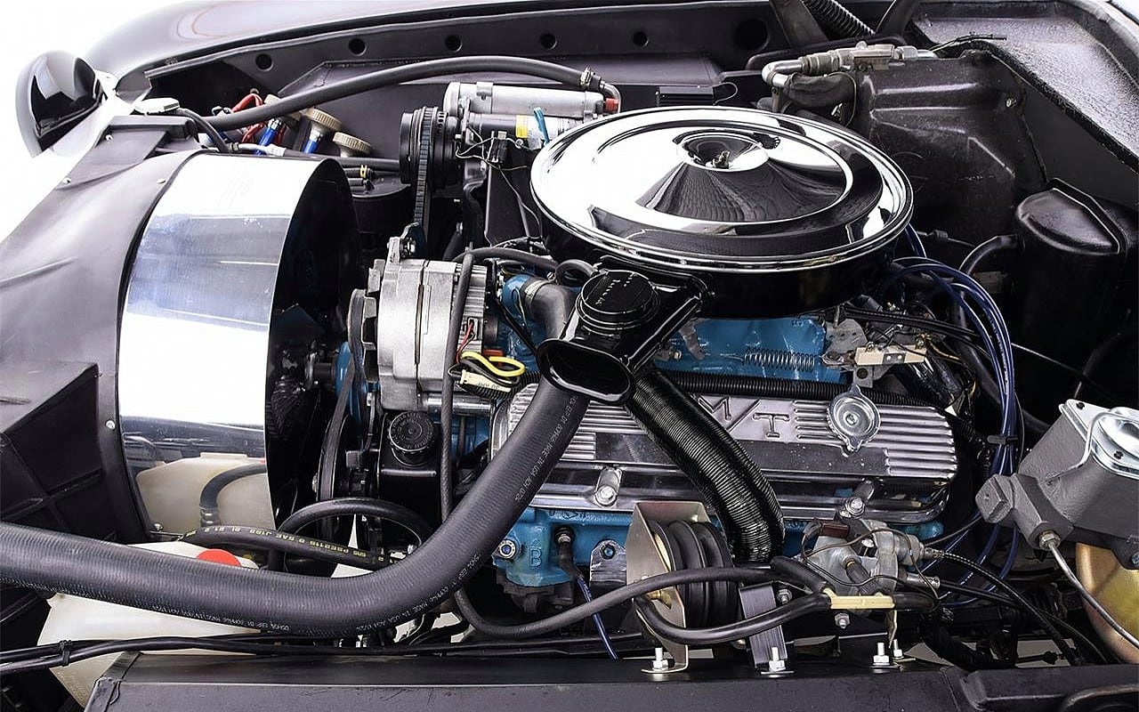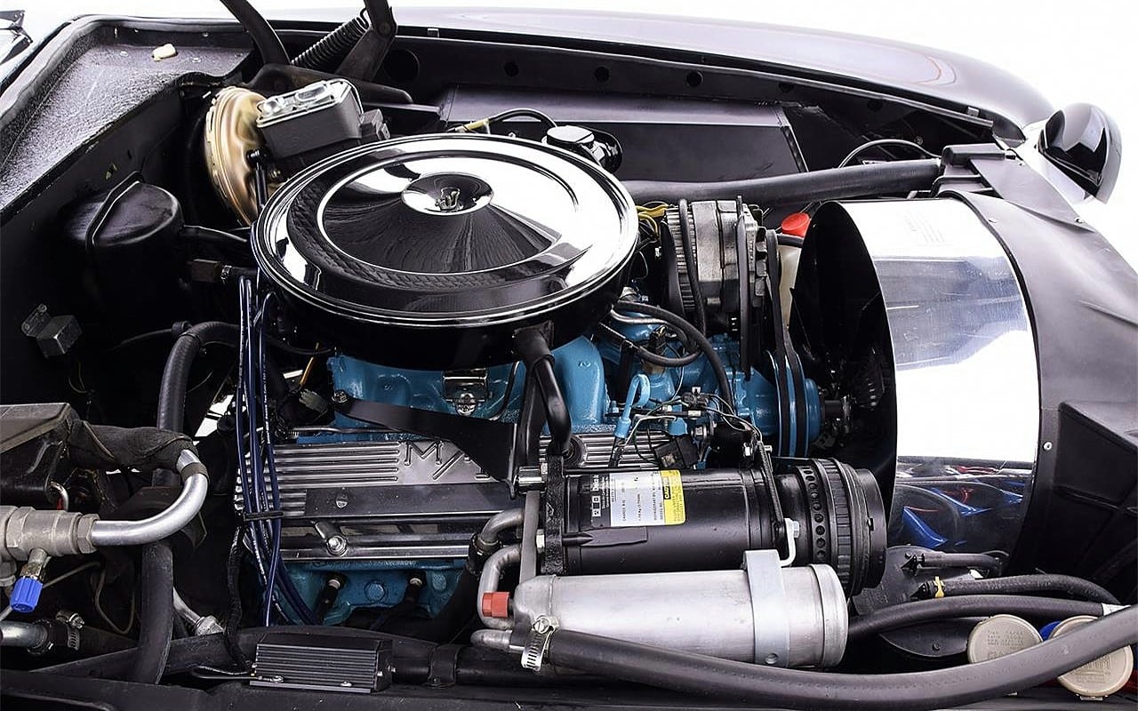 Bien qu’il est relativement difficile d’obtenir de VRAIS renseignements techniques sur les anciennes voitures américaines qui ne sont plus fabriquées et qui ont été construites en d’innombrables versions destinées les unes aux USA, les autres à certains marchés d’exportation…, mes recherches m’ont apporté la preuve que le moteur des premières Stutz Blackhawk était comme indiqué dans les brochures, publicités et articles…, typique de la technique américaine…, un 8 cylindres en V de 7L4 prétendument de 425 chevaux (avec un rapport volumétrique de 8,2)…, qui en réalité ne devait pas en avoir plus de 250…, l’alimentation étant (plus ou moins bien) assurée par un gros carburateur inversé quadruple corps Rochester et l’évacuation des gaz brûlés s’effectuant par un double échappement.