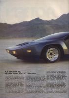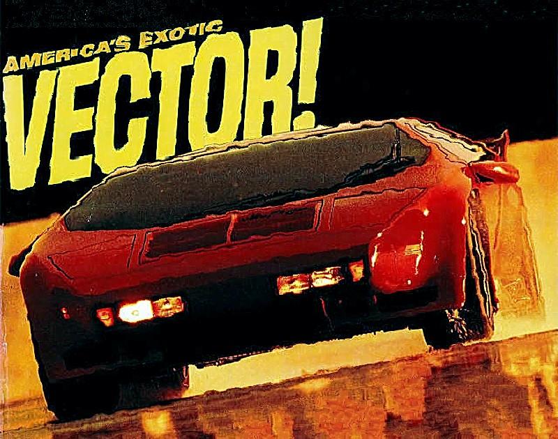 Wiegert a dessiné la Vector lui-même en s’inspirant outrageusement de la Carabo de Bertone… et sa voiture ne faisait que 1,05 mètres de hauteur…, la société de Jerry Wiegert et son équipe intergalactique portait le nom de Vehicle Design Force… et les quartiers généraux de l’entreprise se trouvaient à Venice, dans la banlieue de Los Angeles…, la Vector ressemblait étrangement à un prototype roulant très sophistiqué, avec la différence que la Vector était beaucoup plus basse que toutes les autres voitures de sa catégorie…