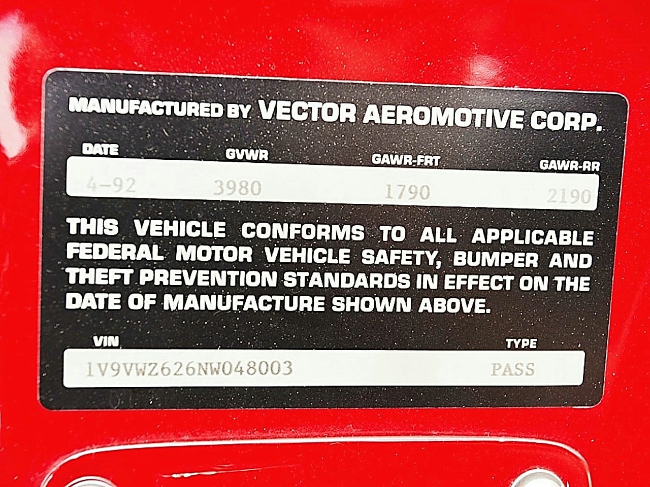 Malgré des solutions modernes, très vite adoptées par la concurrence, la production totale de la Vector W8 se limitera à 22 exemplaires entre 1989 et 1993, dont 2 présérie et le prototype W2 reconverti en proto W8.