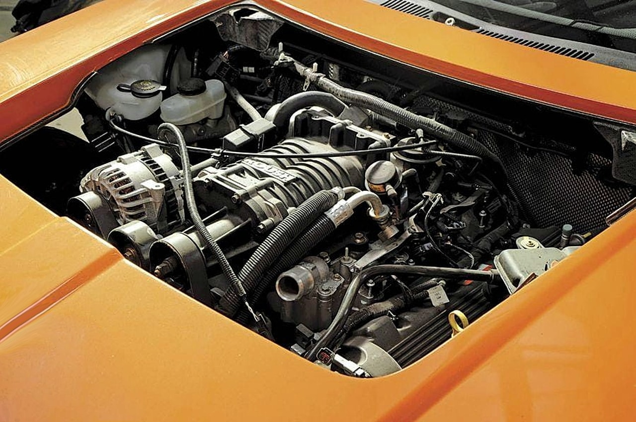 L’enveloppe allouée au projet n’avait semble-t-il pas permis aux designers de s’attarder plus longtemps sous le capot ni d’effacer le petit Shelby Cobra du collecteur d’admission…, un détail charmant soit dit en passant… et puis qu’importe, tant que le bourdonnement sourd d’un bon gros V8 non bridé suffisait à procurer l’un des meilleurs rapports prix/plaisir de cette époque-là !