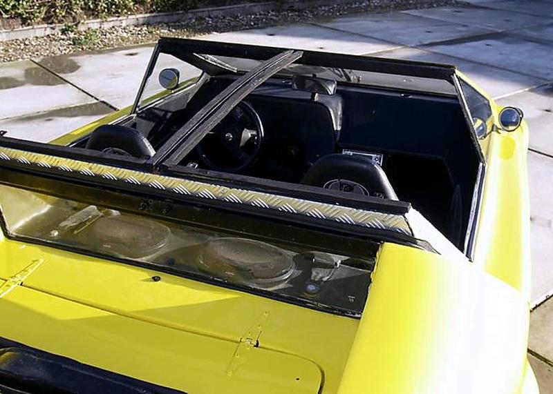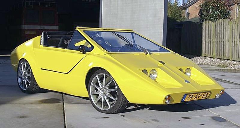 D’ailleurs, parlons-en, quoique les mots me manquent pour le décrire…, il est vrai que bon nombre de kit-cars monstrueux sortis à cette époque ont passablement vieilli, mais celui-ci avait déjà pris un sacré coup de vieux dès sa présentation : une sorte de baignoire pouvant servir de cuisine semi-équipée avec douche…, inutile de préciser que chaque apparition de la bête booste le quotient supra-nul des beaufs…, navrant et rigolo !