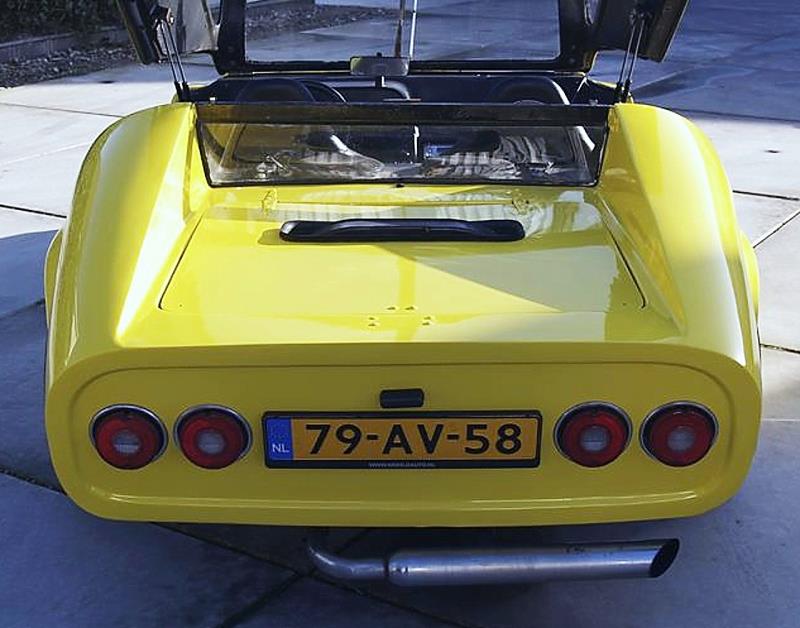 << Ed Matula a conçu cette voiture de sport en Amérique en 1972, comme voiture en kit basée sur l’indestructible coccinelle Volkswagen. Lors de la conception Ed (Matula) avait la Lamborghini en tête…, le design a été testé dans la soufflerie de la NASA où (Ed) Matula travaillait… Importée aux Pays-Bas (Hollande) en 1980 par l’expert de la légendaire voiture vintage et restaurateur : Bart Holland, cette Matula GT a une merveilleuse histoire : le châssis, le moteur et la boîte de vitesses ont été méticuleusement nettoyés, où nécessaire révisés et transformés en un châssis presque indestructible (gag !). Le dossier de vente néerlandais d’origine de 1974 est présent dans la voiture proposée à la vente. Cette GT Matula a roulé peu de kilomètres ; quelques milliers.., c’est dommage, parce que dans cette exécution, avec le solide moteur de coccinelle, la Matula roule comme une Ferrari (sic !). De 0 à 80 en quelques secondes, le vent dans les cheveux, c’est la belle vie !… La voiture dispose d’une capote d’été et d’une capote d’hiver dans un état impeccable (sic !). Le rapport du CT est valable jusqu’en août de l’année prochaine (2016), l’évaluation indépendante de la voiture classique de 2012 a comme principale conclusion : “Cette Matula est à la fois optiquement et techniquement en excellent état”… La valeur a été (en 2012), fixée à 7.500 euros, l’estimation de l’expert se situe entre € 6.250 et € 8.250… C’est une voiture unique, un parfait objet de collection et un excellent investissement dont vous pouvez profiter tous les jours ! >>