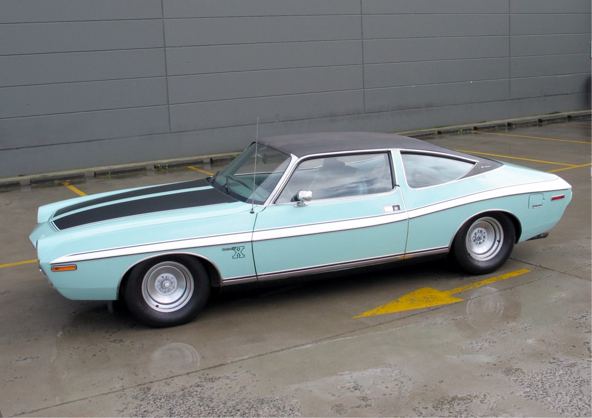 L’AMC Matador Coupe était plus spacieuse qu’une Mustang ou une Camaro, toutefois limité à 4 adultes plus un enfant, et le roofline en pente donnait aux voitures un “plus” stylistique…, l’AMC Matador Coupe a été proposée dans plusieurs variantes super-luxueuses, notamment le modèle d’Oleg Cassini et le modèle “Barcelona“, qui étaient très populaires…, chapeautant la gamme Matador, la version “X” se voulait une “Muscle-car” différente, plus originale, mieux démarquée.