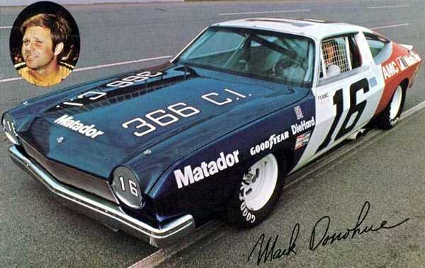 A chaque course, c’était un véritable délire, à tel point qu’AMC disposait dans l’enceinte réservée au public des courses Nascar, d’un camion aménagé en bureau de vente, autour duquel étaient exposées quelques Matador Coupe, lesquelles étaient souvent vendues plus cher que leur prix officiel Dealer, parce que disponibles immédiatement, avec la signature de Mark Donohue sur le couvercle de la boîte à gants…, le délire atteint son apogée, lorsque l’équipe de Roger Penske immortalisa l’image “Matadorienne” avec une photo le représentant tel un Matador…, photo remise à tous les “fan’s” des AMC Matador !
