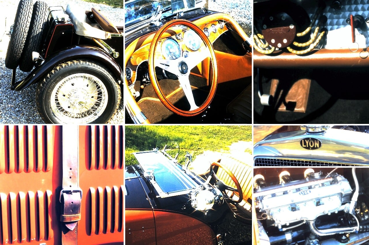 Rêve inutile certes, mais oh combien poético-mécanique…, la Lyon a donc été construite à partir de rien…, si ce n’est un sous assemblage d’une collection d’éléments mécaniques qui appartenaient à d’autres voitures, principalement Jaguar… et sortis des rayons de plusieurs étagères. Finalement il est arrivé au fini main avec la volonté de perfection jusque dans les moindres détails, rien ne devait être faux ni simulé pour obtenir de l’effet…, dans la Lyon, ce qui importait le plus c’est ce qui se trouvait sous la “peau” de la voiture : le châssis, les éléments de roulage et l’intérieur. Avant de commencer la construction d’une automobile de ce type, il y a une quantité considérable de choses à faire concernant l’outillage, les accessoires, les matrices, etc…, il y a une myriade d’éléments qui doivent être formés et usinés. C’est là que résidait l’art, la carrosserie devait être un complément d’habillement et ne jamais être l’élément dominant.