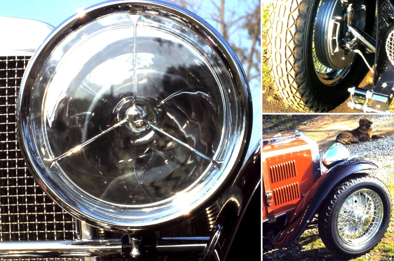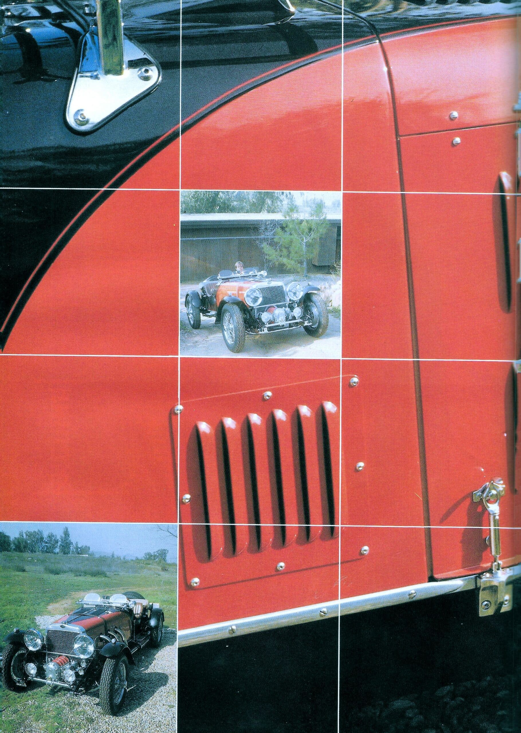 La voiture devait être plus que fonctionnelle (sic !), elle devait être une œuvre d’art ! Pendant des années Ross avait été attiré par la possibilité de voir et de travailler sur le châssis, les freins et la suspension d’une voiture sans devoir ramper dessous ou enlever des panneaux… , il avait toujours été énormément fasciné par l’aspect rude et la construction sans délicatesse des monstres de la route de la troisième décade, mais il pouvait pleinement apprécier le bénéfice de la technologie nouvelle. Ross s’était assigné une mission…, construire un “véhicule à moteur” dans le style des années trente, de le rendre encore plus vrai que les créations des années trente et de lui donner la finition d’une Duesenberg ou d’une Rolls Royce des années trente. La réponse était donc pour lui la construction d’un véhicule qui combinait les éléments de deux périodes et pouvait passer, à première vue, pour une Bugatti Type 35 ou une Mercedes SSK et même, vue d’un peu plus loin, pour une vraie vieille Morgan ou MG, aussi longtemps que ce n’était pas une simple réplique de l’une d’elles.