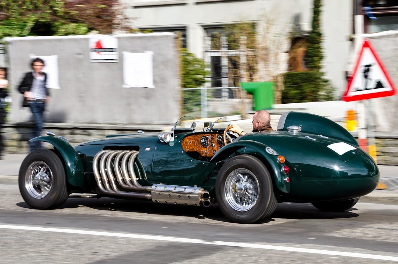 Il est strictement interdit de conduire une voiture de course sur la voie publique…, sauf à Peterborough, en Angleterre, où les agents de la police locale ferment les yeux avec bienveillance. Cette étrange Formule-1 style 1952 leur est aussi familière que le Bus 32 : ils savent qu’elle est pilotée depuis 1985 par l’intrépide Arthur Wolstenholme, un gentleman un rien excentrique dont l’irrépressible penchant pour les voitures de course des années ’50 a toujours été pris très au sérieux…