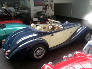 Je ne vous narrerais pas non plus l’épopée de “The Vintage Motor Company Ltd”, si ce n’est qu’il s’agissait d’une petite fabrique d’automobiles “néo-classiques”, du type : châssis “à l’ancienne”, sur lequel est boulonnée la carrosserie moderne mais d’un look ancien… en ce cas une extrapolation allongée des fameuses Bentley MK-VI (Royale Windsor)… mais aussi d’une sorte de Morgan de luxe (mieux finie) version XXXXL (Royale-Impérial-LeSabre)… toutes motorisées d’un robuste et fiable V6 Ford 3.000cc injection, équipé d’une boite automatique (Windsor) ou d’une boîte manuelle (LeSabre)…