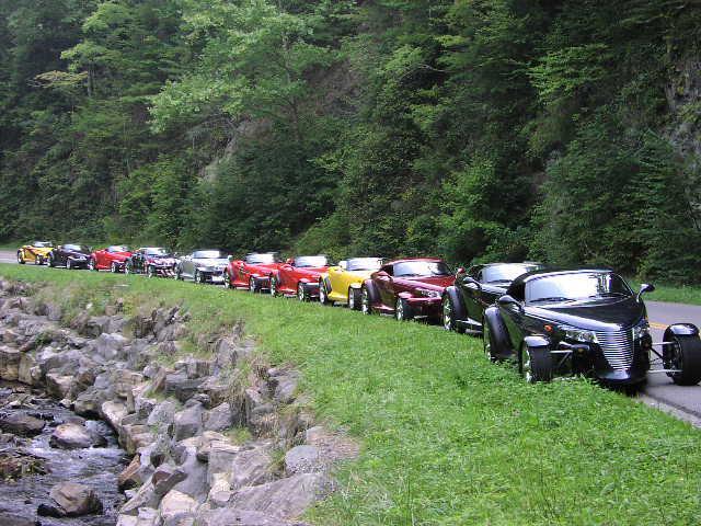 – “Le Prowler est un hommage à l’art des hot rods”, m’a expliqué Craig R. Love, ancien ingénieur exécutif de l’équipe Prowler…, “Cela signifie que voyager avec une caravane de Prowler à travers tout les USA, en compagnie de nombreux Hot-Rods classiques, a été très spécial pour l’équipe. Mais le Power-Tour n’était pas simple. Alors qu’un des prototypes de Chrysler fait à la main voyageait à intérieur d’une remorque, tous les Prowler de la caravane circulaient par eux-mêmes sur route, de Detroit à Los Angeles, à l’Ohio, à la Floride, au Texas…, accompagnés d’une petite armée d’ingénieurs et techniciens. Les voitures étaient câblées électroniquement pour récolter les données d’acquisition des équipements sur des ordinateurs… et à presque chaque arrêt le long du chemin, les ingénieurs branchaient leurs ordinateurs portables afin d’accéder aux données de chaque voiture afin d’évaluer celles-ci”.
