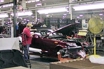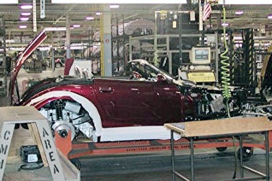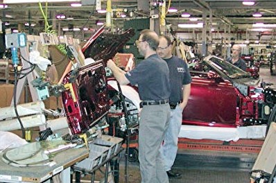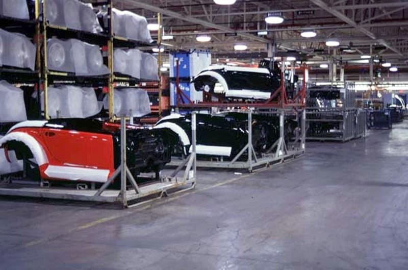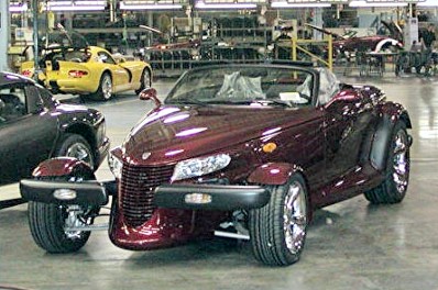 -Le premier modèle proposé était la RT/10 “Roadster” avec un panneau de toit amovible type de soft-top, jusque mi-1996, année ou le coupé GTS est entré en production. Le rétro-Hot-Rod Plymouth Prowler a lui été introduit en 1997. Les deux voitures sont fabriquées côte à côte depuis lors. Avant, l’usine de Warren était très différente, on y fabriquait des camions. Il n’y avait pas d’ordinateurs contrôlant les robots chargés de l’assemblage et des soudures. Il y a maintenant, seulement 225 ouvriers-artisans hautement qualifiés, employés dans cette usine. L’ancienneté moyenne de nos employés est supérieure à 20 ans. Seule la crème de la crème des ouvriers-employés-artisans de nos usines DaimlerChrysler peut demander à être transférés ici…