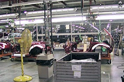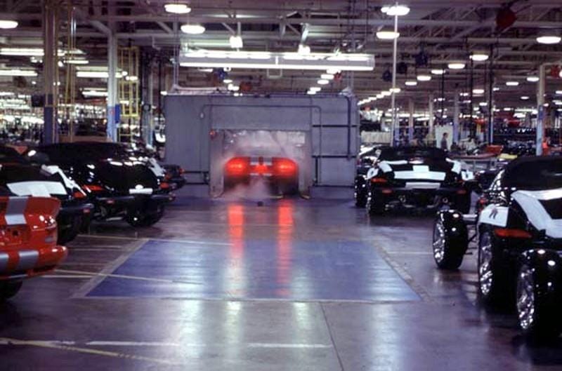 – Oui, C’est comme une ambiance country-club ici, par rapport à nos autres usines. Chaque employé affiche la même passion pour les Viper et les Prowler qui sont construits sur des lignes d’assemblage distinctes mais parallèles, et chacune est de 200 mètres du début à la fin. Chaque station sur les lignes d’assemblages, dispose d’une sorte d’arbre de Noël-dragstrip ayant une fonction similaire. Lorsqu’une voiture est en cours d’assemblage, la lampe est jaune. Quand une station termine son travail, brille la lampe verte. Ce n’est que lorsque toutes les lumières qu’on sait qu’un “cycle” est terminé et qu’on peut passer à la prochaine étape-station.