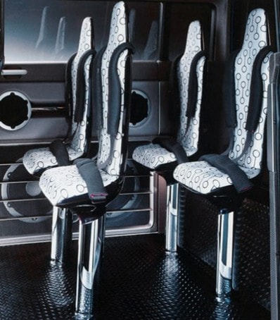 Haut de 2 mètres, taillé au rasoir, ce sombre véhicule se voulait entièrement dédié aux loisirs nocturnes et aux plaisirs sexuels en bande (sic !). Tout, à l’intérieur, évoquait une boîte de nuit : le tableau de bord ressemblait à une table de mixage, le volant à un tourne-disque, tandis que de puissantes enceintes audio étaient installées dans les portes. Et pas question de se reposer à l’intérieur…, les sièges ne permettaient qu’une position semi-debout afin de donner aux passagers la sensation officielle de : “déambuler dans la ville à la manière d’un skateboarder”…, alors qu’officieusement, le look robot-cuiseur avec mini-vitrages était calculé pour que la nudité des occupant(e)s et leurs rapports sexuels, ne se voient pas de l’extérieur…