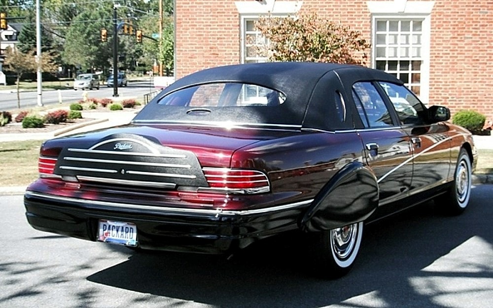 Les héritiers ayant-droits de la marque Packard ont réclamé (tempété) pendant des années pour qu’un fou fasse revivre leur marque… et, 20 ans après la fermeture, en 1978, le carrossier Budd Bayliff basé à Lima dans l’Ohio, spécialisé dans la construction de corbillards de luxe, a acquit le droit d’apposer le nom “Packard” sur des coupés et des berlines GM-Buick Riviera modifiés par ses soins…, ces replicars affichaient de simples changements cosmétique sans le style des Stutz, sauf une proposée à cette époque tellement chère, que personne ne l’a acquise, au contraire des horreurs suivantes vendues “seulement” au triple de la voiture de base transformée en Kitchmobile…