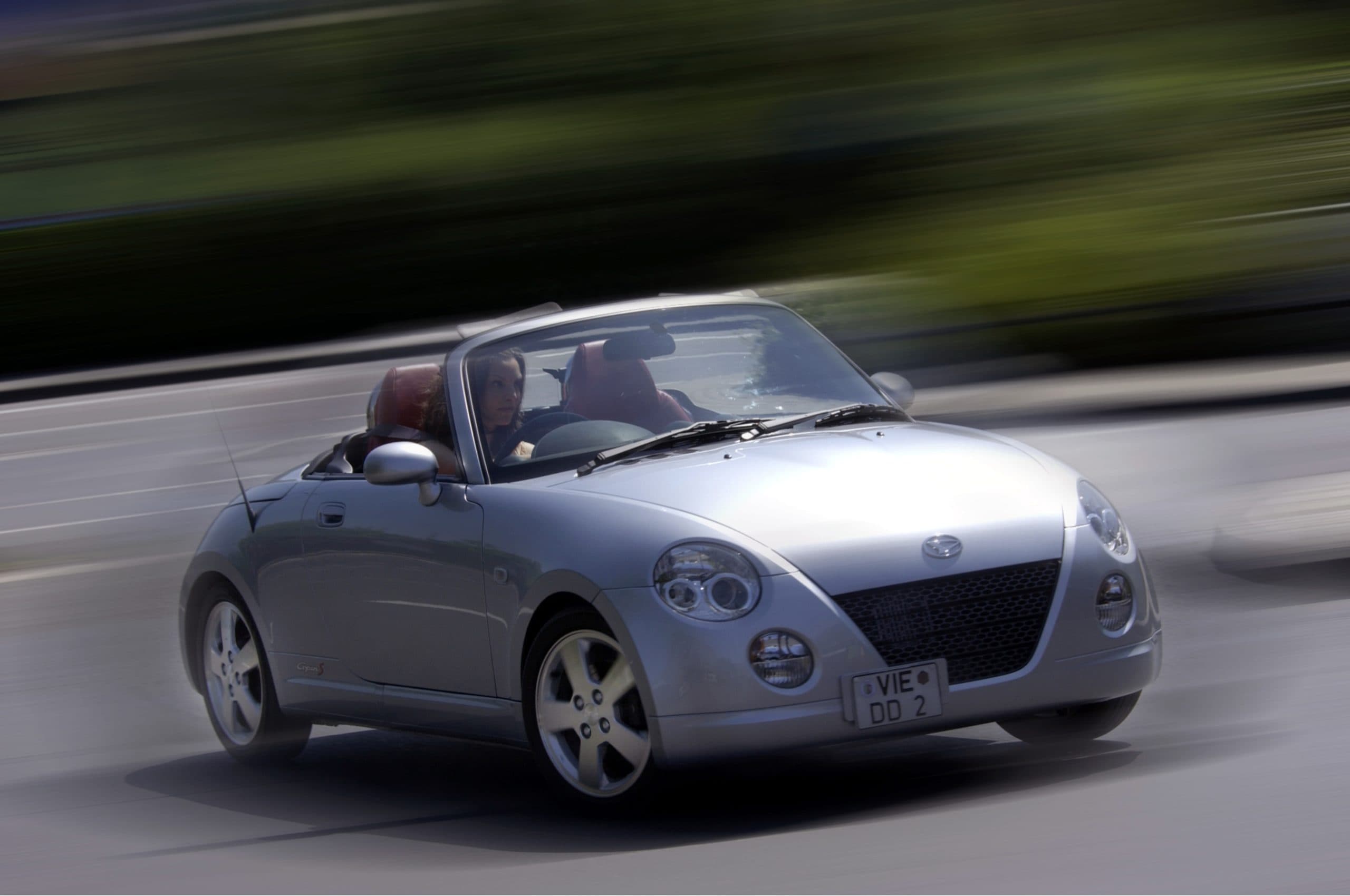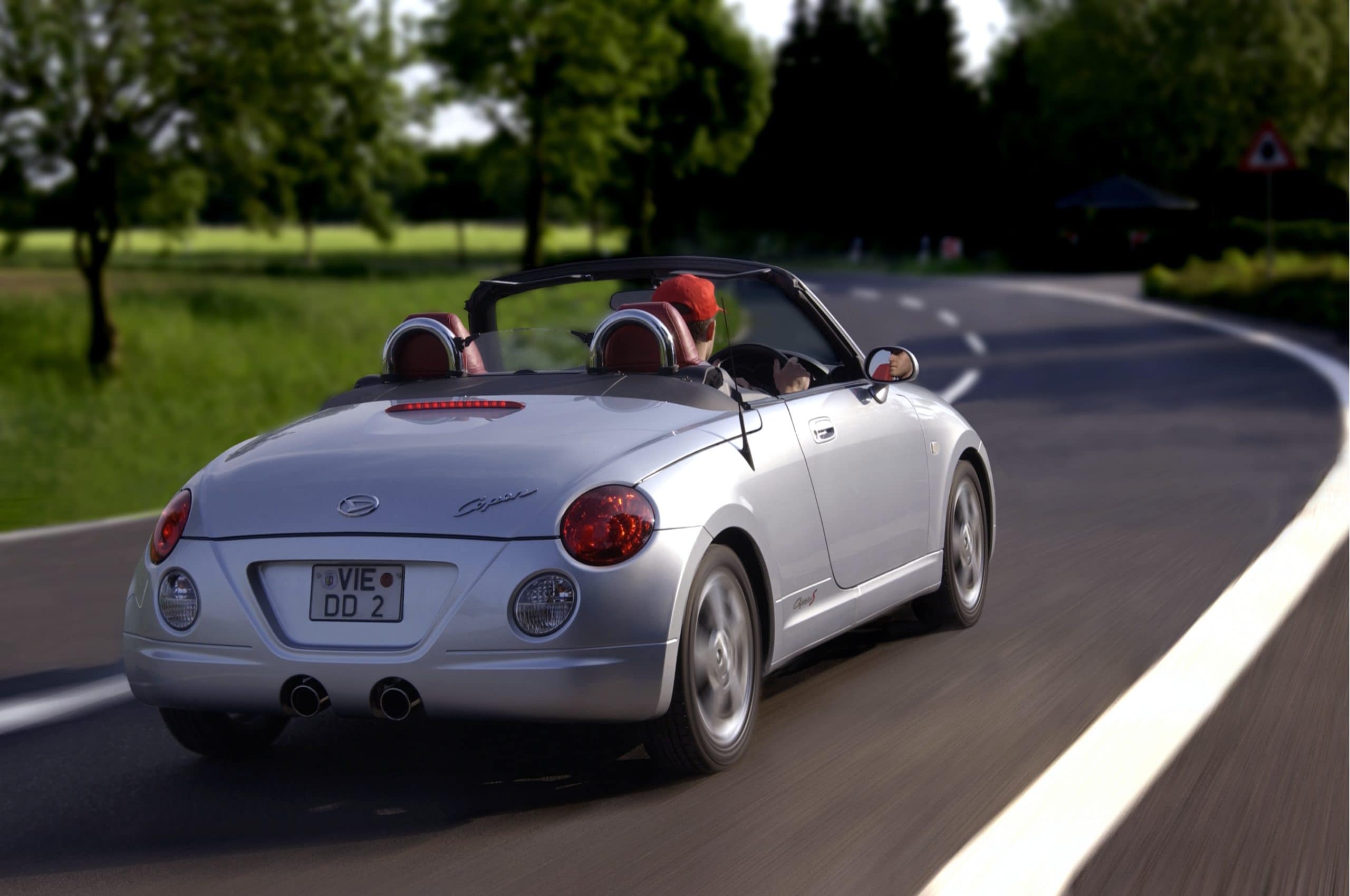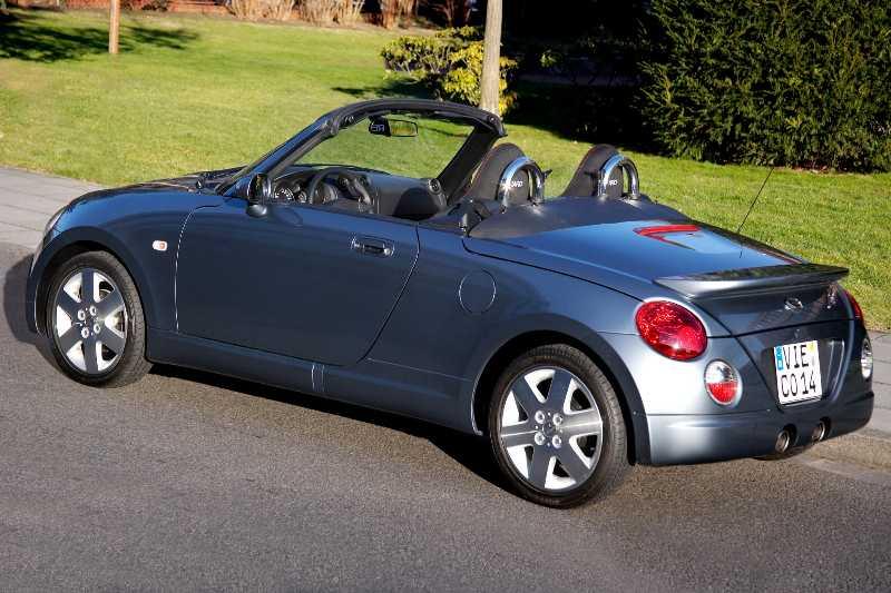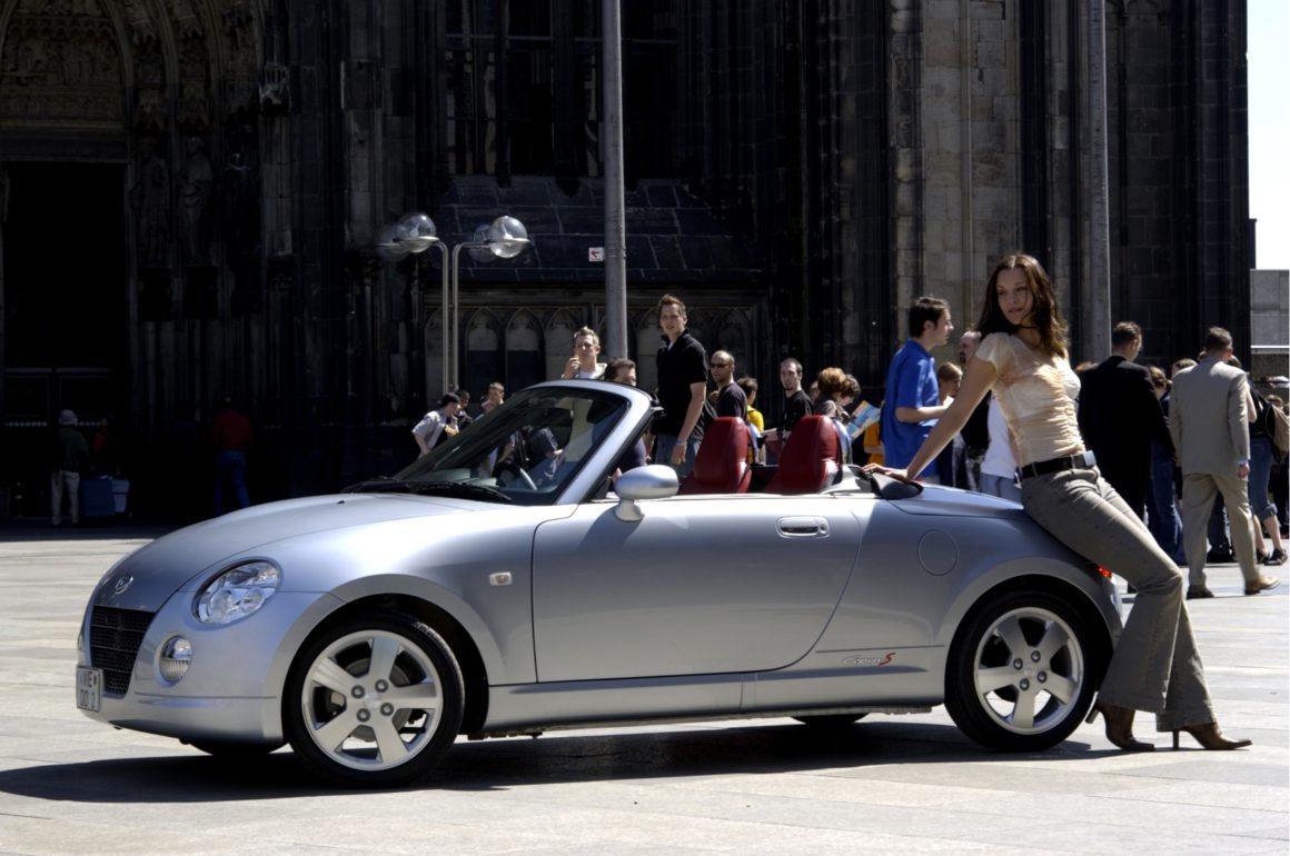 Heureusement pour eux les constructeurs sont imaginatifs et proposent quelques modèles au taux de désirabilité plus élevé que les citadines basiques qui constituent l’essentiel de la catégorie…, on retrouve ainsi quelques perles néo-rétros au look baroque, quelques « daily-drivers » goldorakifiées en bêtes de courses et plus rarement des objets purement ludiques telle cette Daihatsu Copen.