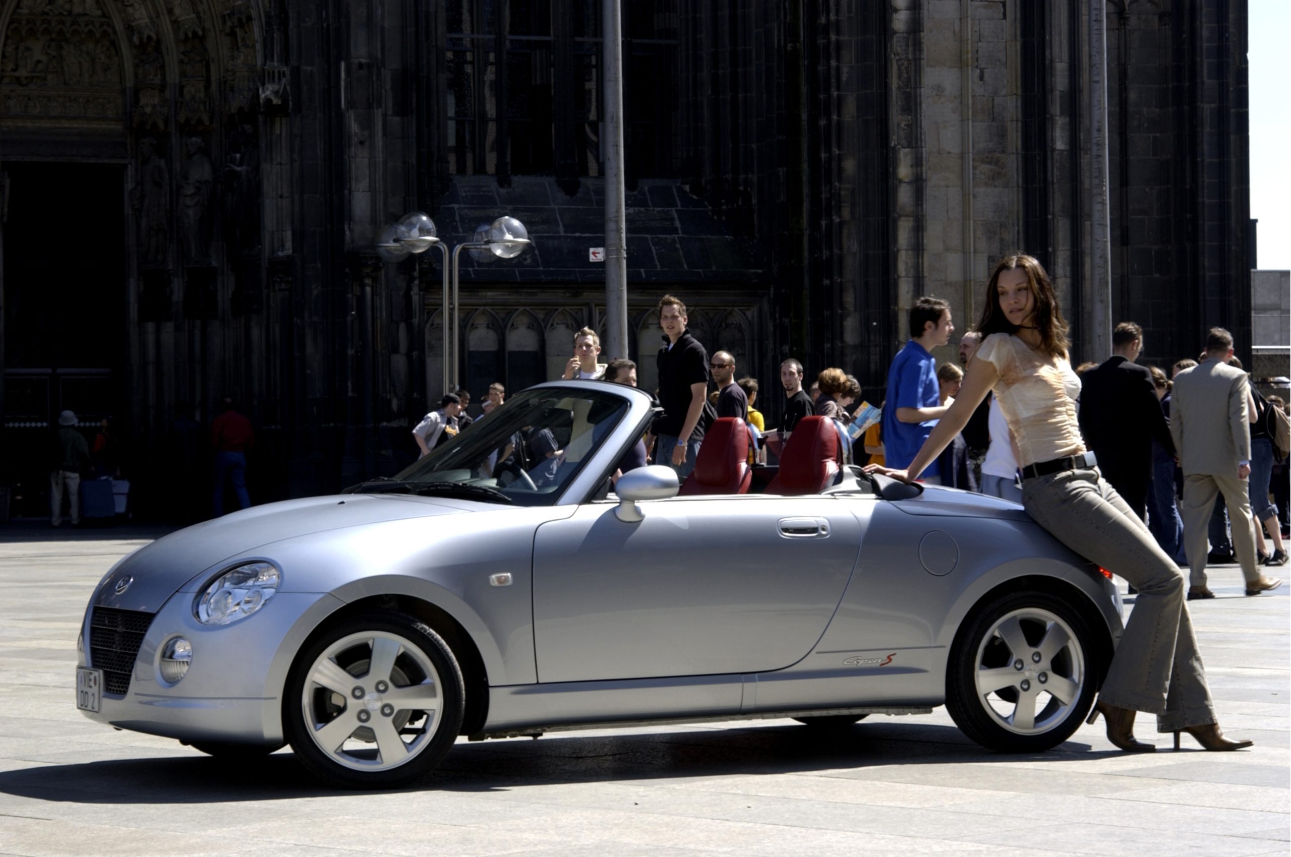 Entre curiosité, surprise et convoitise, c’est un franc succès pour la Daihatsu…., c’est tout d’abord son gabarit qui interloque les propriétaires de smart for-two, puis ses airs de « sportscars » qui agaceront les aspirants playboy en smart coupé, alors que les belles en Mini Cooper tombent sous le charme de cette voiture souriante…., mais toutes et tous s’étonnent de ce logo en forme de « D » décidément bien inconnu…