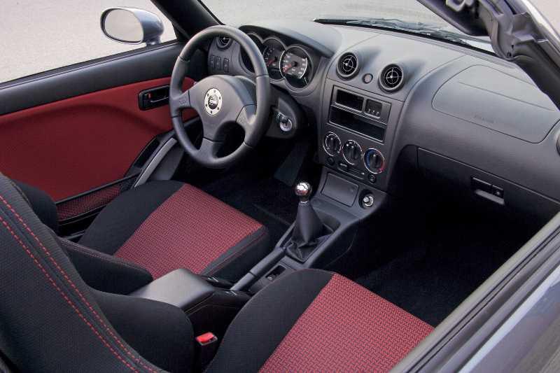 L’habitacle surprend par la finesse de son traitement et par sa richesse : sièges et contre-portes tendus de cuir rouge, levier de vitesse chromé, volant sport Momo…, il n’en faut pas plus pour que la connotation de « toy car » s’estompe pour laisser place à un caractère des plus avenants.