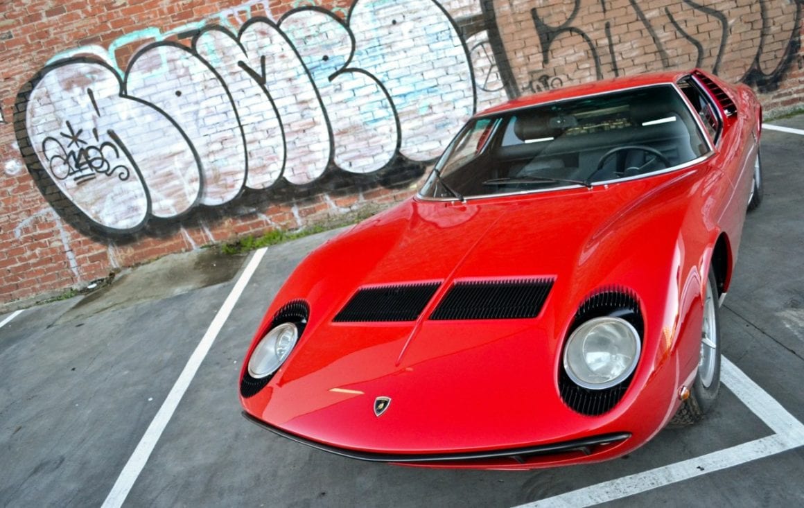 Une fois calé dans le baquet, on remarque que la position de conduite est également sensiblement meilleure, on n’est plus contraint d’adopter la position accroupie-vrillée…, le volant et le pédalier étant plus dans l’axe du conducteur…, en revanche, lorsque le V12 tourne à bon régime, il fait rapidement aussi chaud que dans l’habitacle de la Miura…, heureusement, la climatisation de série (quand elle fonctionne)…, permet de rafraîchir l’atmosphère…