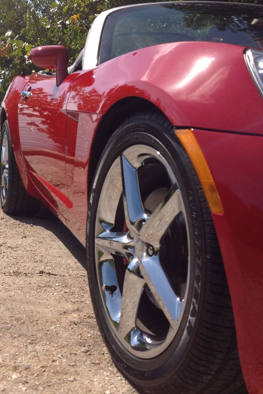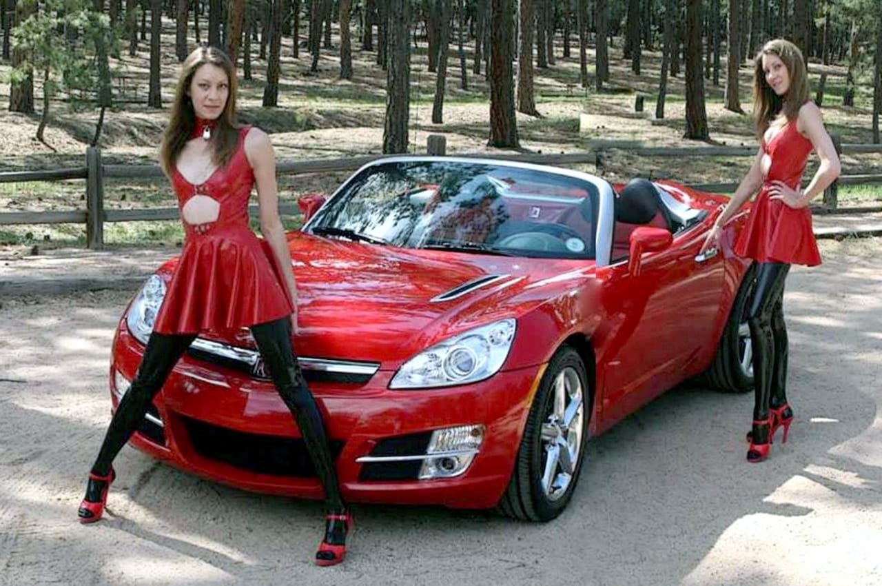 J’anticipe toujours sur la suite des évènements, quels qu’ils soient, avec mon esprit critique habituel, ayant toujours été quelque peu déçu d’à peu près tout, en l’occurrence il s’agissait ici de répondre à l’invitation d’une lectrice m’affirmant qu’il n’y avait pas que les Corvette à prendre en considération…, que la Saturn Sky valait le détour (et sa propriétaire aussi)… et, effectivement, en les apercevant sous le soleil, toutes deux de rouge vêtues, j’ai immédiatement eu une érection !