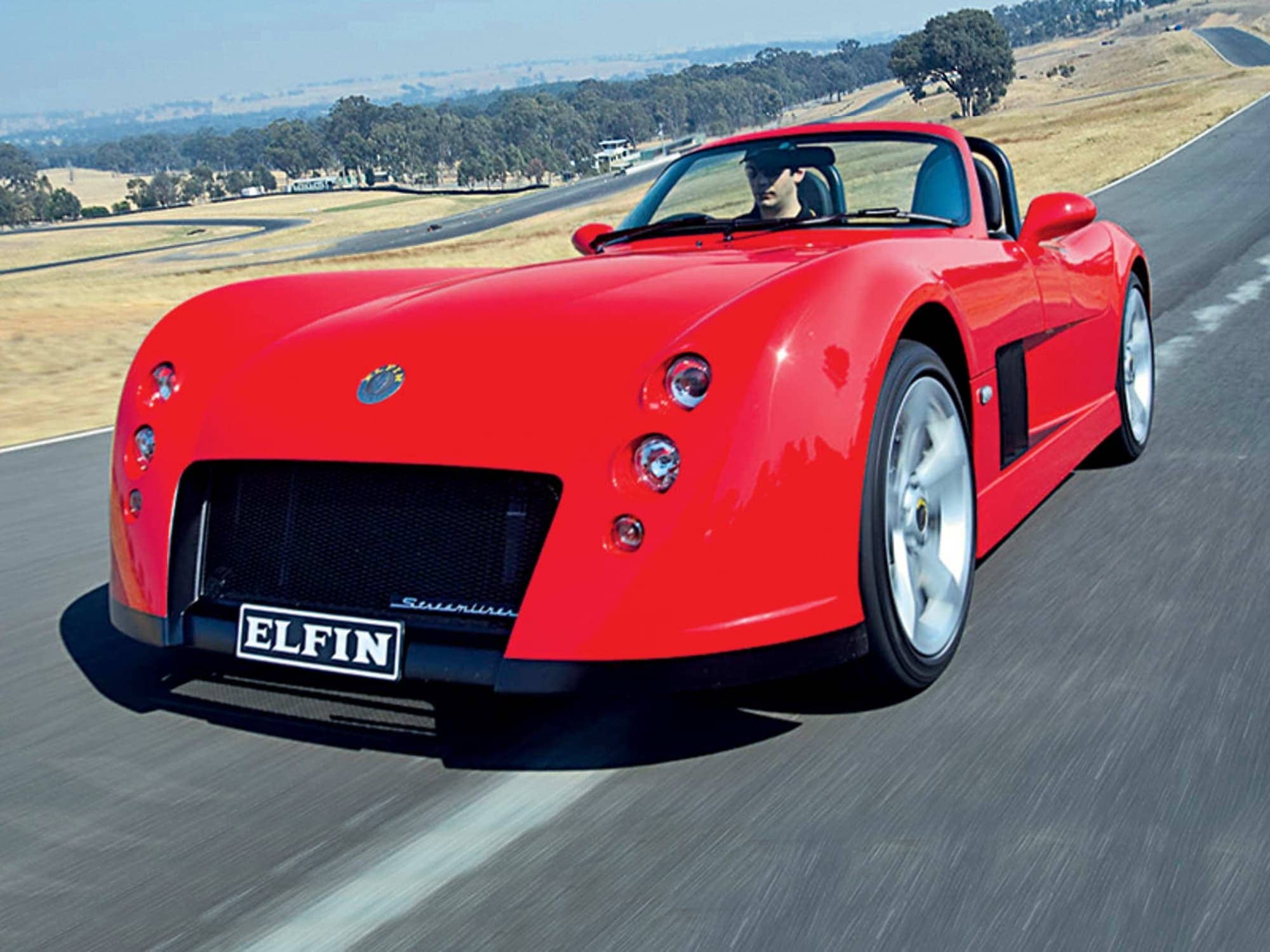 Saviez-vous que cet engin qui fait immanquablement penser à un savoureux mélange de Lotus 7 et d’AC Cobra, est produit en petite série par l’artisan australien Elfin.