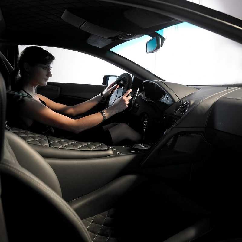 Mais d’un coup, tout est devenu plus intéressant, beaucoup plus intéressant…, j’ai croisé une très jolie jeune dame et je lui ai fait une proposition totalement indécente…, le siège passager est maintenant occupé par une jeune femme brune aussi magnifique qu’élégamment vêtue…., que ce soit à cause de la voiture, de la pureté du cœur du conducteur ou des 500 euros que je lui a donné pour qu’elle accepte de monter pour aller réaliser quelques photos, plus si affinités…, voilà donc ce que j’ai appris aujourd’hui : d’accord, les femmes peuvent aussi apprécier le frisson d’un 0 à 100 parcouru en 4.2s, un intérieur magnifiquement bien fini avec un badge chromé Lamborghini sur le tableau de bord, une ceinture de sécurité slalomant entre leurs formes généreuses ou la douce lumière d’un couché de soleil sur leurs longues jambes bronzées…, mais elles ne sont quand même pas prêtes à tout pour en vivre l’expérience… et celles qui sont attirées par la voiture comme une truite mordant un appât chromé ne s’en contentent sûrement pas…, mon conseil, si vous voulez tenter votre expérience…, assurez-vous donc d’abord que votre facteur est d’une laideur repoussante si vous ne pouvez pas offrir aussi à votre nouvelle conquête une garde robe complète par Lagerfeld et des week-ends aux Seychelles à foison…