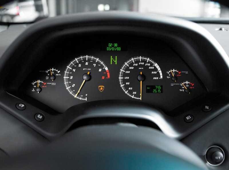 Lamborghini a abandonné l’énorme aileron apparu sur la Countach et poursuivi sur la Diablo (en option)…, l’aileron est “deviendou” un un spoiler mobile , qui se positionne à 50° au dessus de 130 km/h, et à 70° à 220 km/h. une vitesse atteinte grâce au V12 à 60° de 6,2 litres de cylindrée, développant la puissance confortable de 580 chevaux et un couple de 650 Nm…, dans toutes les conditions, le coefficient de pénétration dans l’air reste excellent et varie entre 0,33 et 0,36…, l’essuie-glace avant reste quant à lui fidèle au pantographe inauguré par la Countach