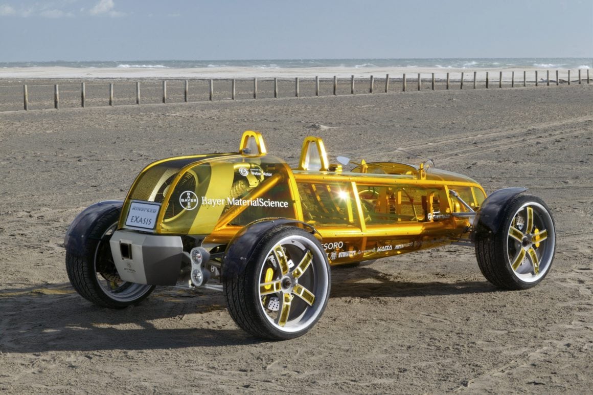 « C’est vraiment une première mondiale », titrait l’édition électronique d’un magazine de renom lorsque les premiers croquis du nouveau concept-car « eXasis » de Rinspeed ont fait leur apparition sur Internet, on pouvait lire un peu plus loin « c’est du jamais vu »... et encore, les esquisses ne faisaient que suggérer ce que Frank M. Rinderknecht, le concepteur visionnaire suisse de l’automobile, avait concocté avec les experts de Bayer MaterialScience AG, un des plus grands producteurs de matières plastiques au monde, pour fêter dignement le 30ème anniversaire de son entreprise : une automobile « à la carrosserie entièrement transparente » et avec un plancher en Makrolon®.