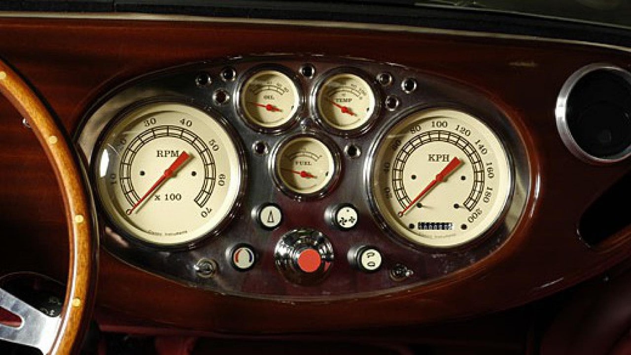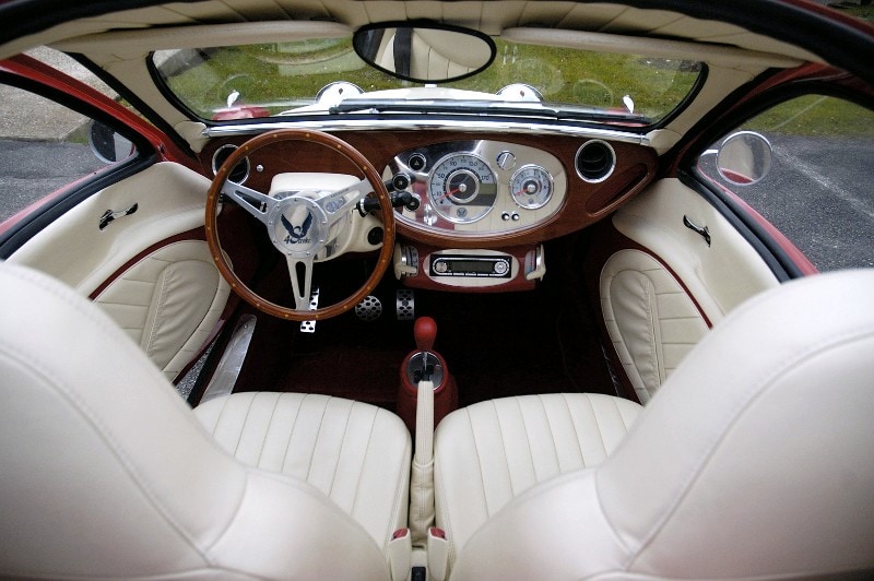 Chromes, cuir tendu et boiseries authentiques s’emmêlent dans un total rétro-moderne d’inspiration “Voisin” (une célèbre marque française d’avant guerre, très “avionique“), ce qui est à la fois une constatation et un compliment.
