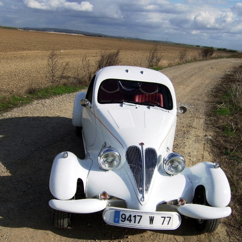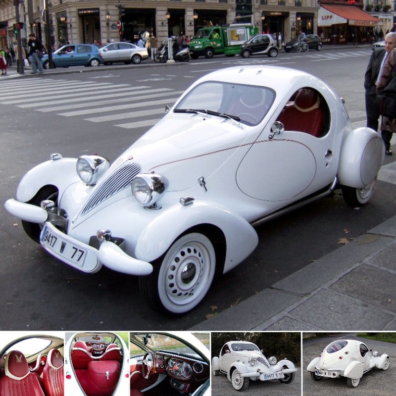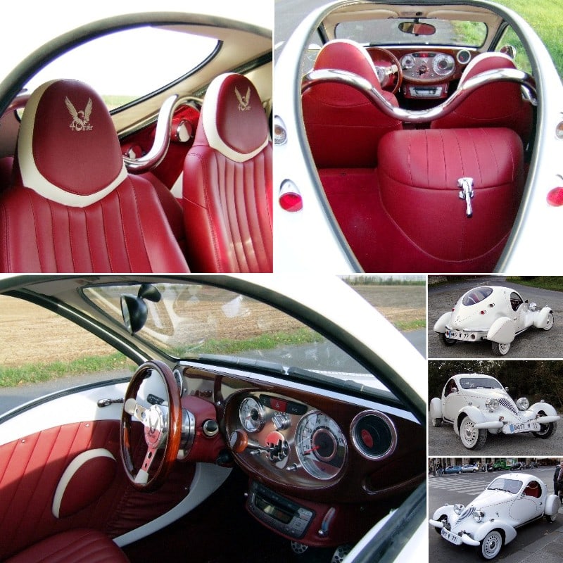 A l’origine, au vu du train avant issu d’une 2CV (le prototype), cet engin aurait été parfait en Kit-car de luxe pour 2CV à recycler…, et ce pour un prix de 5.000 euros le Kit ou 12 à 15.000 euros la voiture terminée, avec une finition de premier plan… et c’est déjà trop cher !